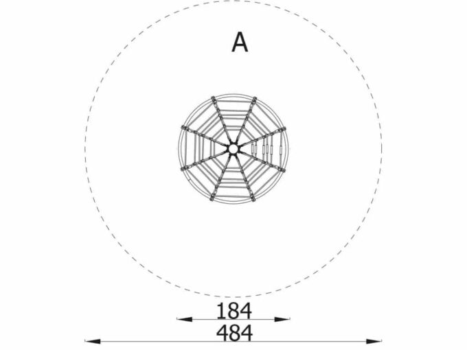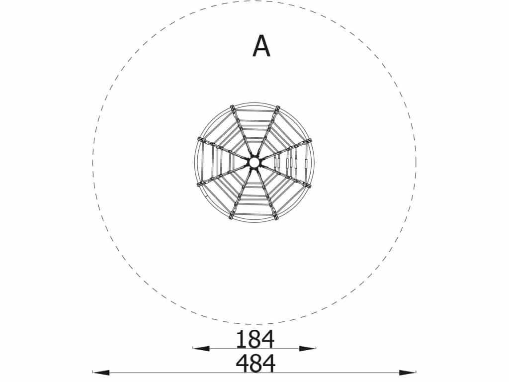 - Material: Stahlelemente: verzinkt und pulverbeschichtet. Alle Verbindungselemente und Ring sind aus Edelstahl AISI 304. Seile und Netze aus 16 mm starken, 6-adrigen Poly-Ferro-Seil mit innenliegendem Stahlkern. Alle Befestigungspunkte sind UV-beständig.