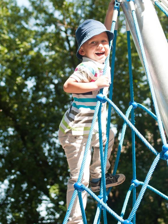 Kletternetz in Kegelform für besonderen Kletterspaß.