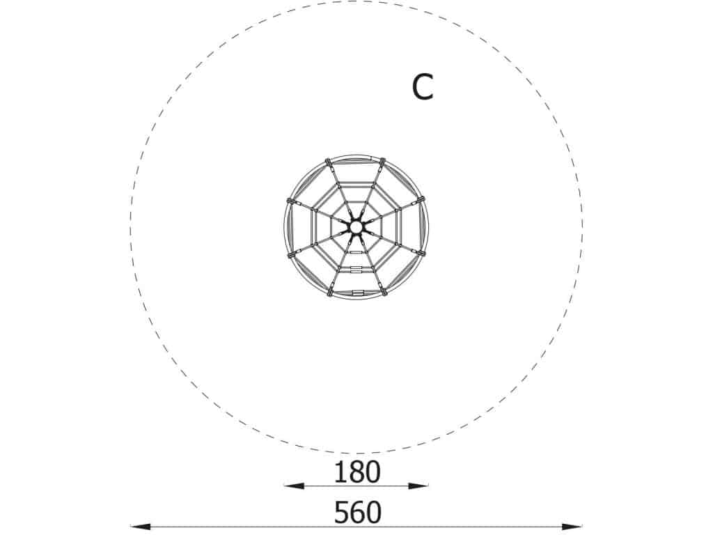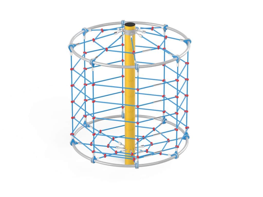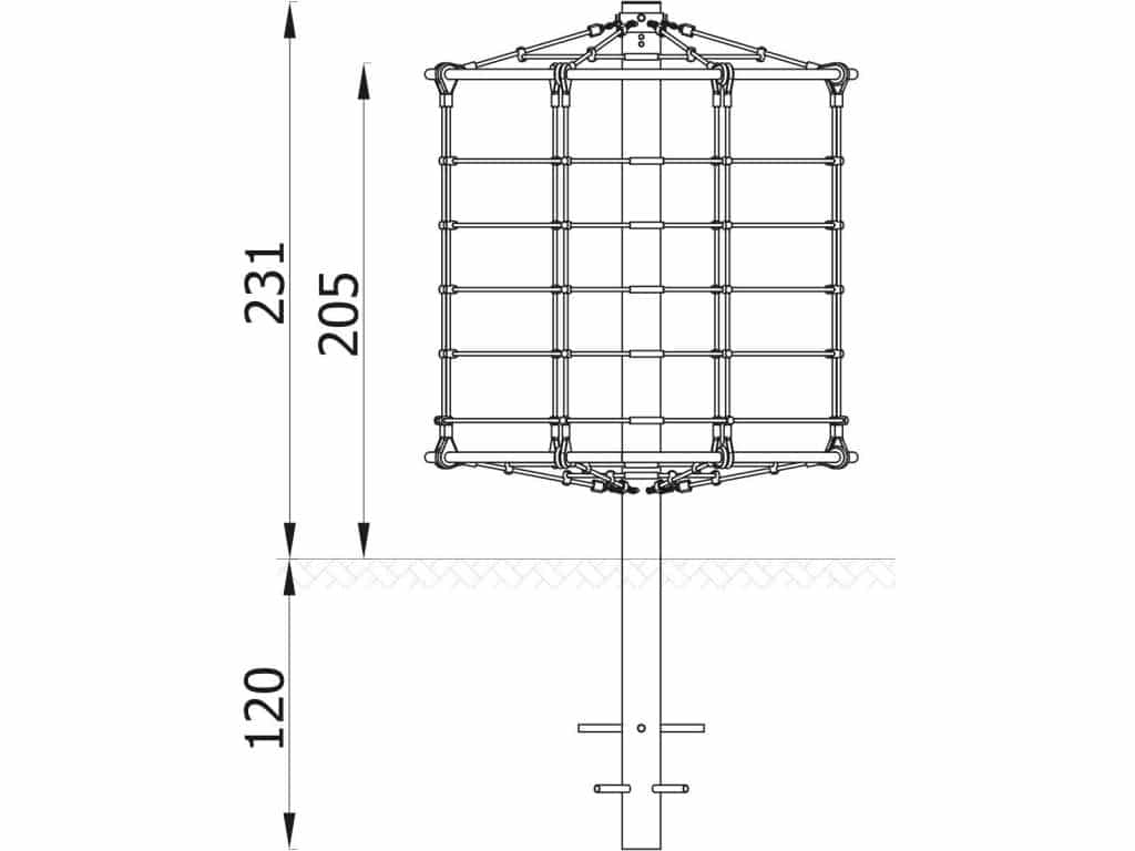 - Material: Stahlelemente: verzinkt und pulverbeschichtet. Alle Verbindungselemente und Ring sind aus Edelstahl AISI 304. Seile und Netze aus 16 mm starken, 6-adrigen Poly-Ferro-Seil mit innenliegendem Stahlkern. Alle Befestigungspunkte sind UV-beständig.
