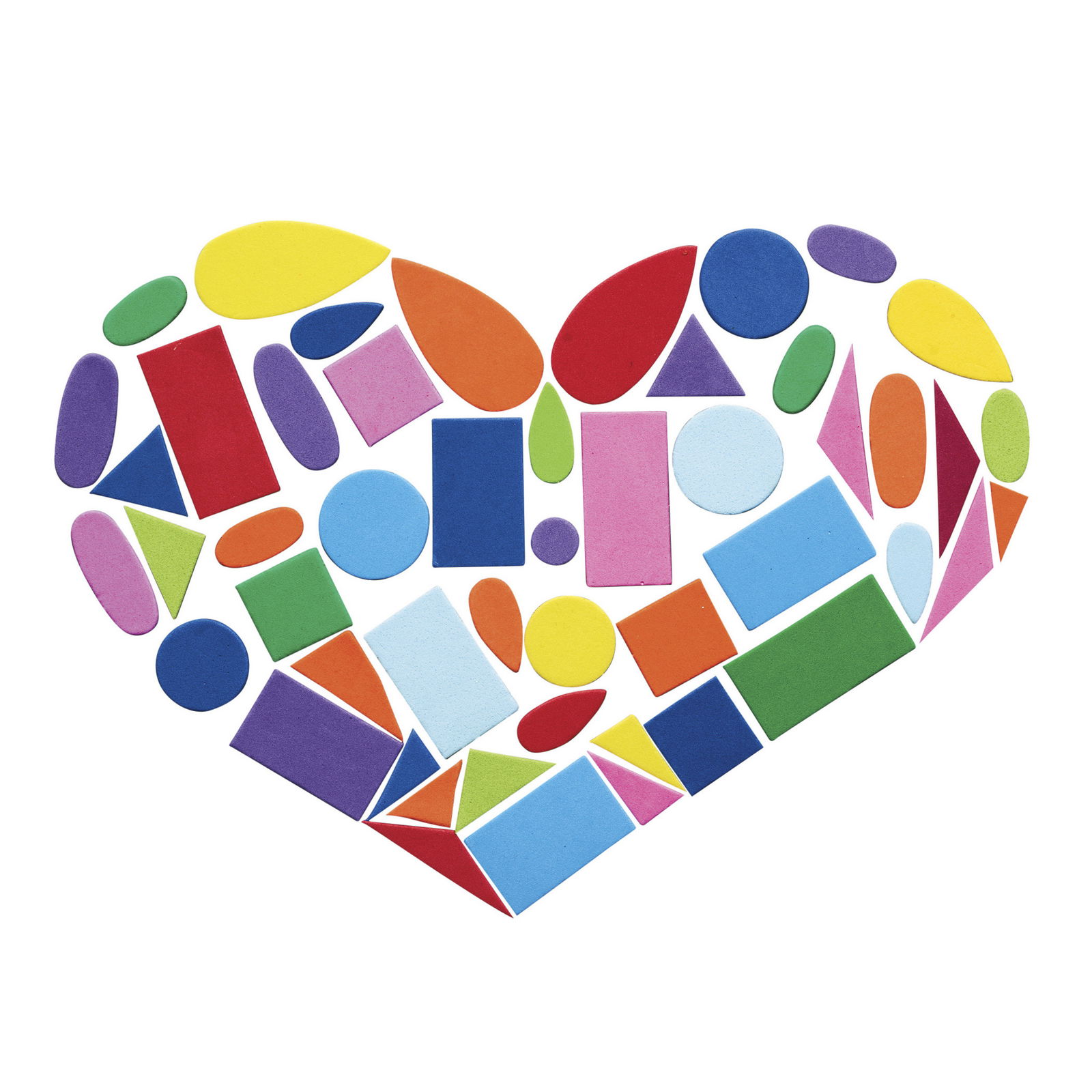 Die Mischung aus verschiedenen geometrischen Formen (Quadrate, Dreiecke, Kreise etc.) und 10 leuchtenden Farben ermöglicht unzählige Designs. Kinder können klassische Mosaikbilder legen, abstrakte Kunstwerke schaffen oder die Sticker nutzen, um Alltagsgegenstände wie Stiftebecher, Bilderrahmen oder Schatzkisten zu verschönern. Das weiche Moosgummi-Material sorgt dabei für eine interessante Haptik und einen tollen 3D-Effekt. - Haftet auf fast allen Untergründen