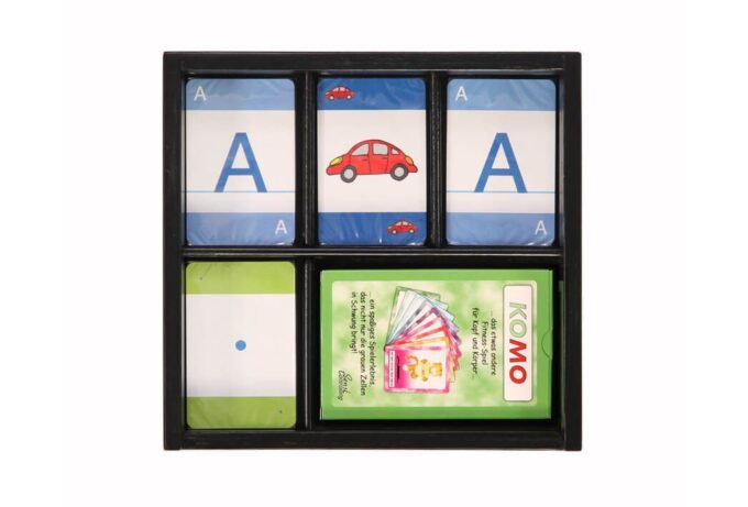 Die liebevolle Gestaltung der Karten aus der Sensi Brainbox macht jedes Spiel zu einem visuellen Erlebnis und hält die Aufmerksamkeit der Kinder immer wieder aufs Neue gefangen. Schon beim ersten Durchspielen lernen sie simultan in mehreren Bereichen: sprachlich und körperlich. Zu den drei verschiedenen Kartenarten, die alle in der praktischen schwarzen Holzbox aufbewahrt werden, existieren diverse Regelvariationen, wodurch die Spiele dauerhaft spannend und herausfordernd bleiben.