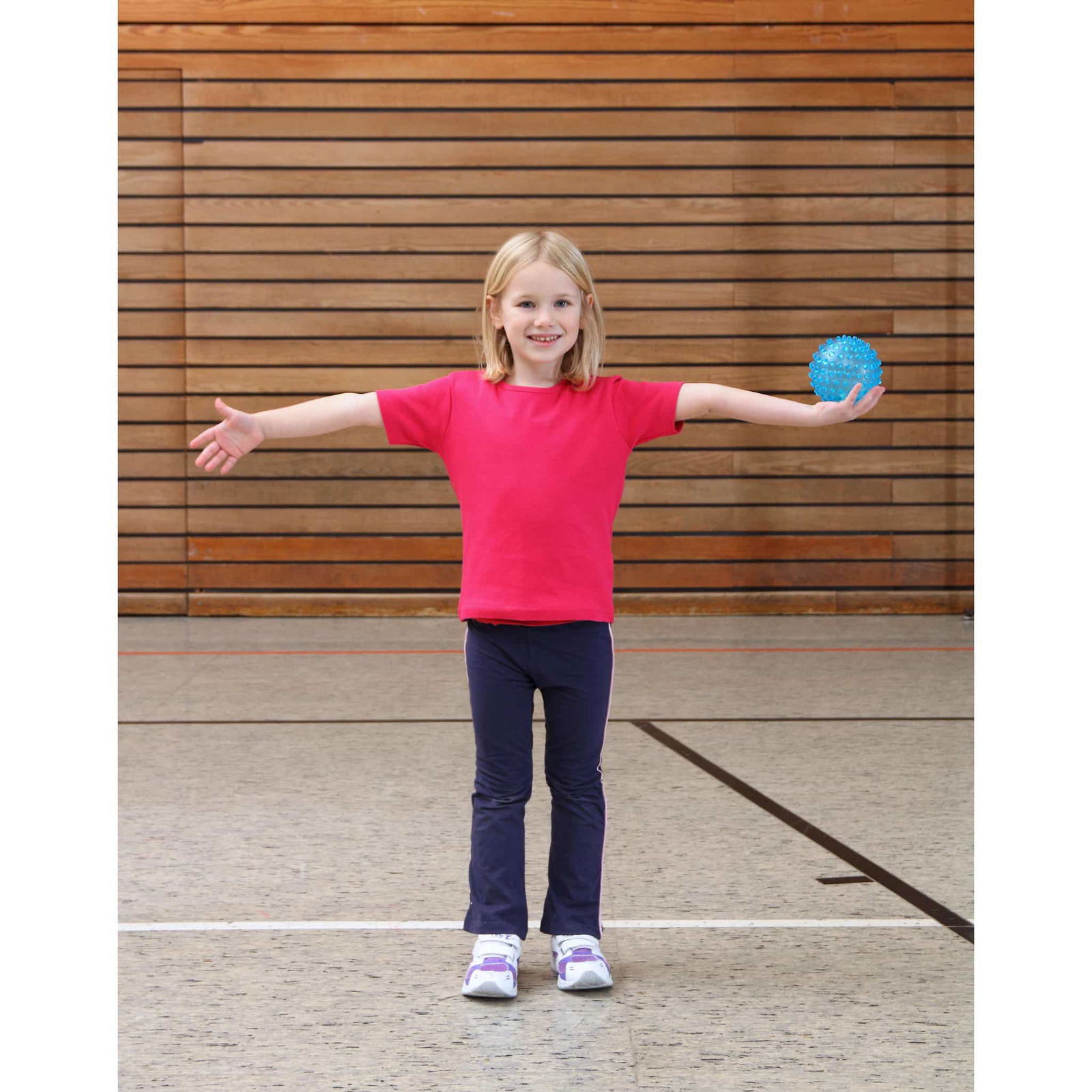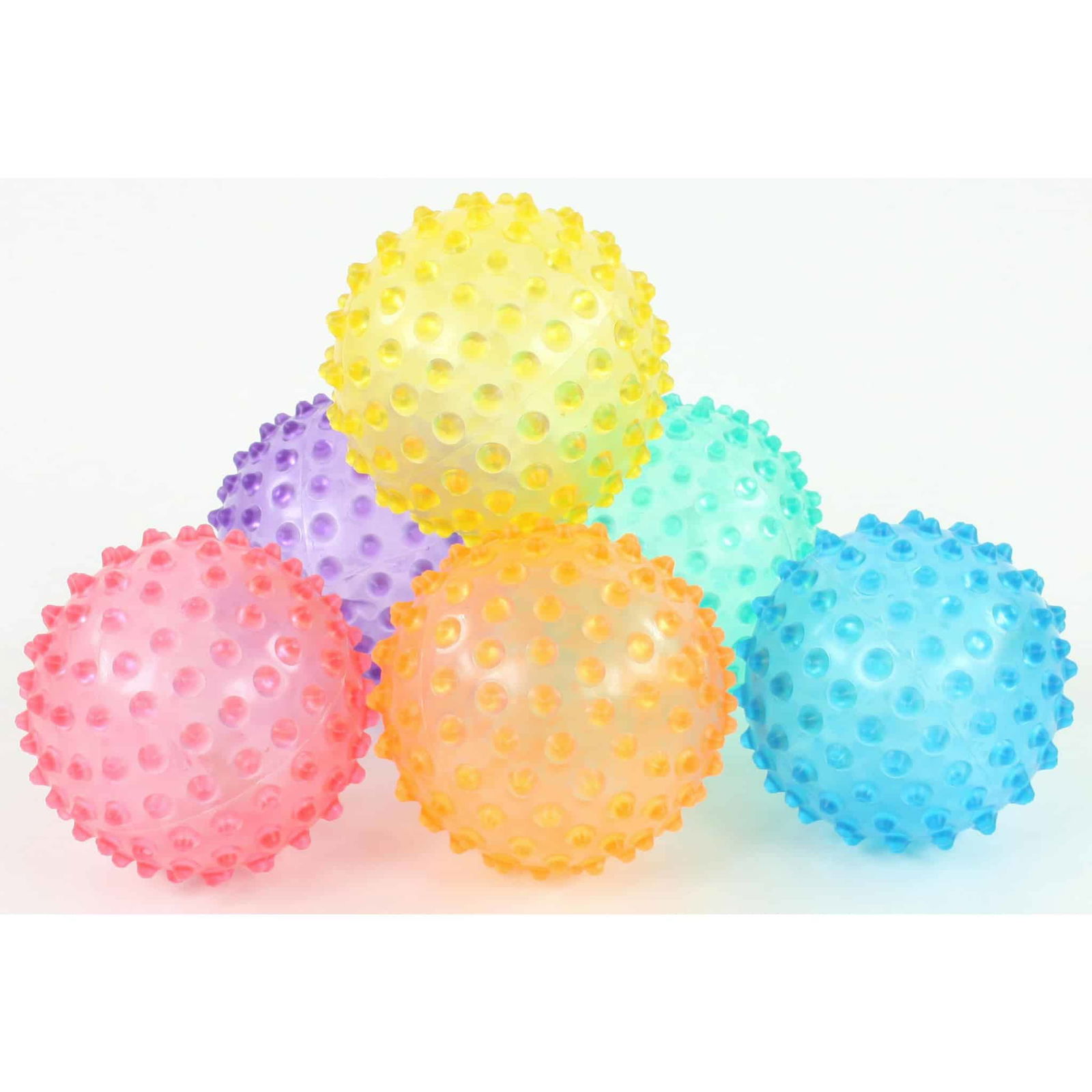 Mit insgesamt sechs Bällen in den farbenfrohen Farben Blau, Lila, Gelb, Orange, Grün und Rot bringt jede Übung Farbe und Freude ins Spiel!