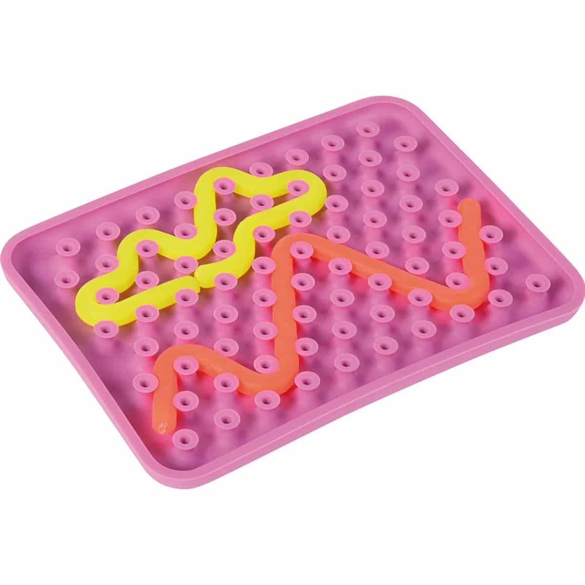 Vom Faden zum Kunstwerk.- Kreatives Gestalten: Kinder können abstrakte Muster, geometrische Formen oder kleine Kunstwerke erschaffen. Die leuchtenden Neonfarben sorgen für visuell ansprechende Ergebnisse und motivieren zusätzlich.