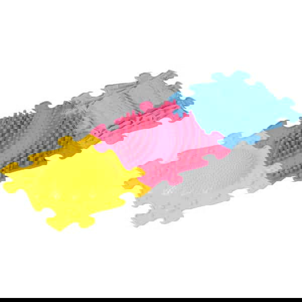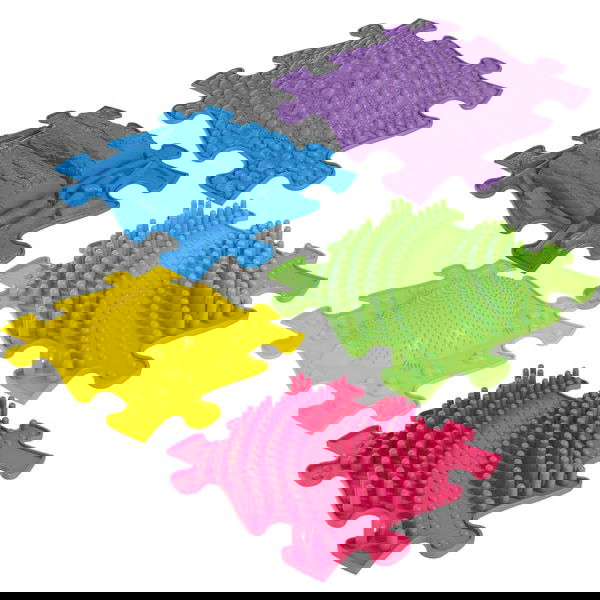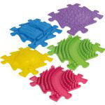 Orthopädische Strukturmatten fördern die Entwicklung körperlicher und kognitiver Fähigkeiten … In der Natur ertasten Kinder mit ihren Händen und Füßen unterschiedliche weiche und harte Oberflächen beim Schlendern, Laufen, Krabbeln und Rutschen. Dabei machen sie Erfahrungen, die existenziell wichtig für ihre Entwicklung sind. Diese Sensorik-Matten in bunten Farben und diversen Härtegraden imitieren die verschiedenste Untergründe der Natur: Gras, Kiesel, Äste und Muscheln ermöglichen beim barfüßigen Begehen vielerlei Sinnesreize. Die abgerundeten Noppen streicheln, massieren und stimulieren die Reflexzonen auf der Hautoberfläche. Zugleich werden der Gleichgewichtssinn und die Koordinationsfähigkeit der Kinder trainiert. Alle Module passen wie ein Puzzle zusammen – die Kinder können sie individuell kombinieren und mit anderen Sets ergänzen. Das Zusammenfügen der Elemente fördert die Feinmotorik und taktile Wahrnehmung der Hände. Die strapazierfähigen Strukturmatten sind ein wesentliches Hilfsmittel in der Ergo- und Physiotherapie und sowohl für drinnen als auch für draußen geeignet. Zur Stärkung der Tiefenmuskulatur der Körpermitte für eine korrekte Körperhaltung. Einfache Reinigung mit Wasser.