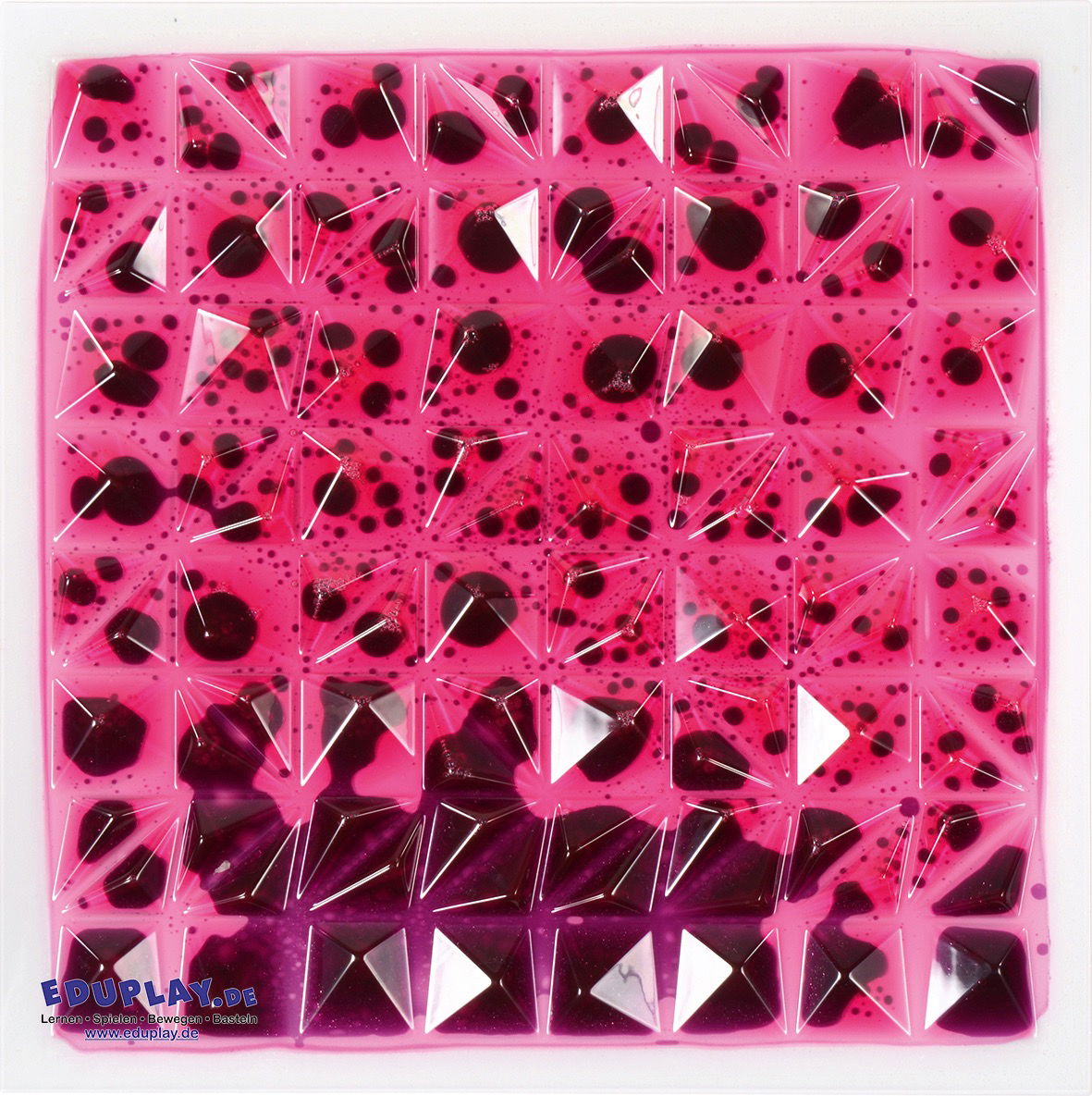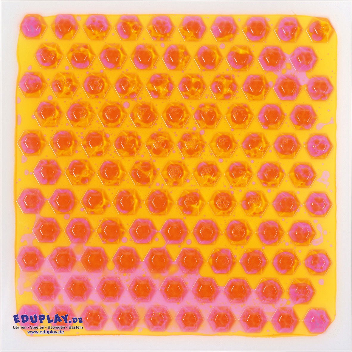 Der „Liquid“-Effekt ist ein echter Magnet für Kinderaugen. Im Inneren der Matten befindet sich eine farbige Kosmetikflüssigkeit, die auf Druck reagiert. Tritt ein Kind auf die Platte, verdrängt es die Flüssigkeit und erzeugt ständig neue, wabernde Muster. Dieses visuelle Feedback motiviert zur Bewegung: Kinder hüpfen, wippen und drücken, nur um zu sehen, wie sich die Farben verändern. Dies fördert die Aufmerksamkeit und das Verständnis von Ursache und Wirkung. - Spielerisches Training von Gleichgewicht und Koordination