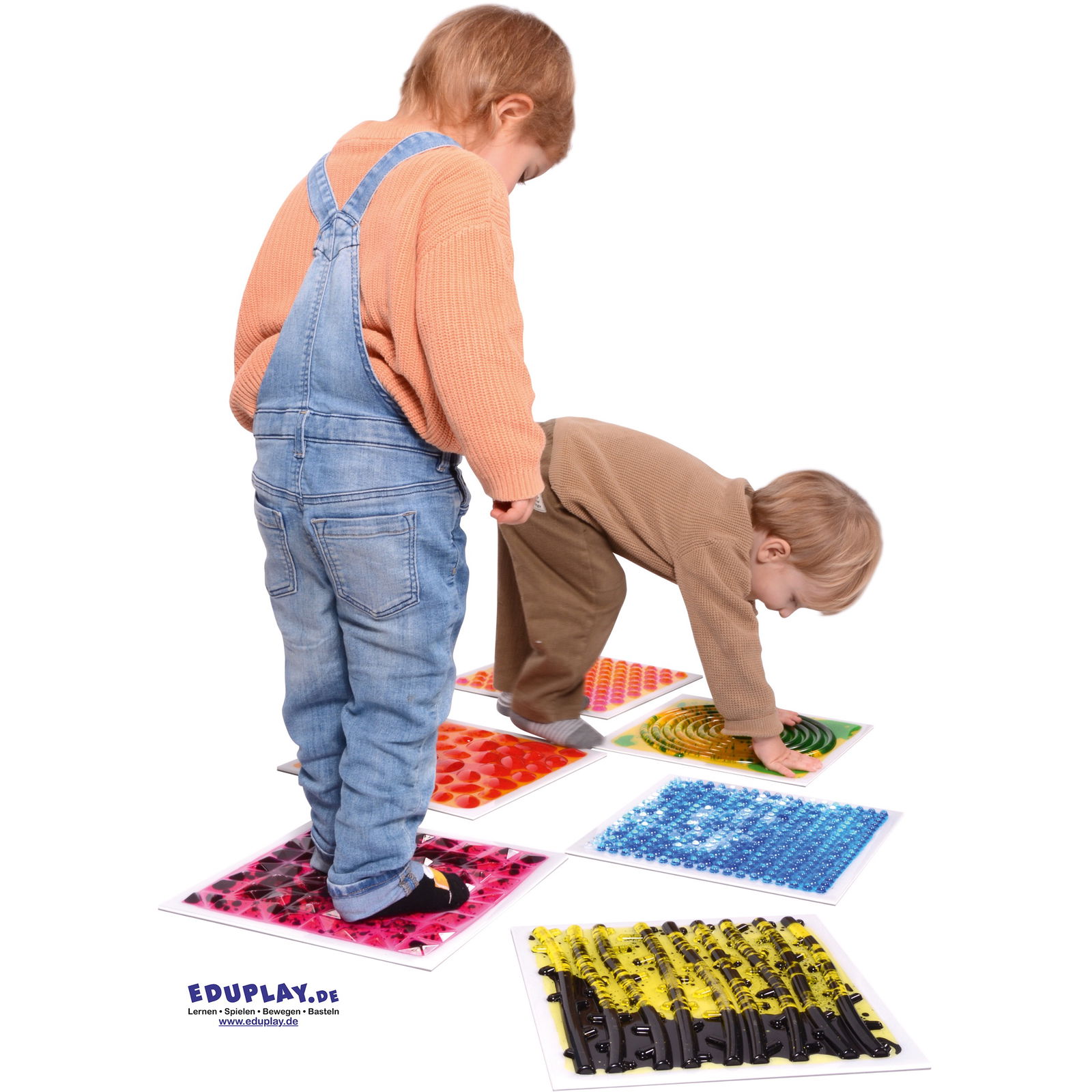 Das Balancieren über die verschiedenen Strukturen erfordert Konzentration und Körperbeherrschung. Die leicht nachgebende Flüssigkeitsfüllung in Kombination mit den festen Oberflächenstrukturen setzt immer wieder neue Reize an den Gleichgewichtssinn. Kinder lernen, ihre Bewegungen zu koordinieren und ihren Körper stabil zu halten, während sie von Platte zu Platte steigen. - Robust und sicher für den täglichen Einsatz