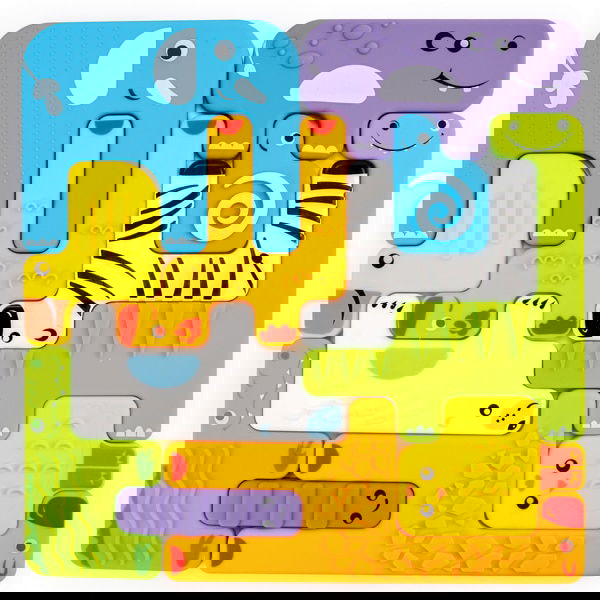 Puzzle für die Sinne … Mit diesen zwölf lustigen Tierchen wird das Spielen und Puzzlen ein handschmeichelndes Erlebnis. Hübsch bedruckt, in bunten Farben, verschiedenen Formen und mit variierenden Oberflächen-Strukturen lassen sich die flexiblen Teile zu immer wieder neuen Tierarrangements zusammenfügen. Auf der Rückseite ist der Name des Tieres (englisch) erhaben zu fühlen. Reinung: mit Wasser und Spülmittel.