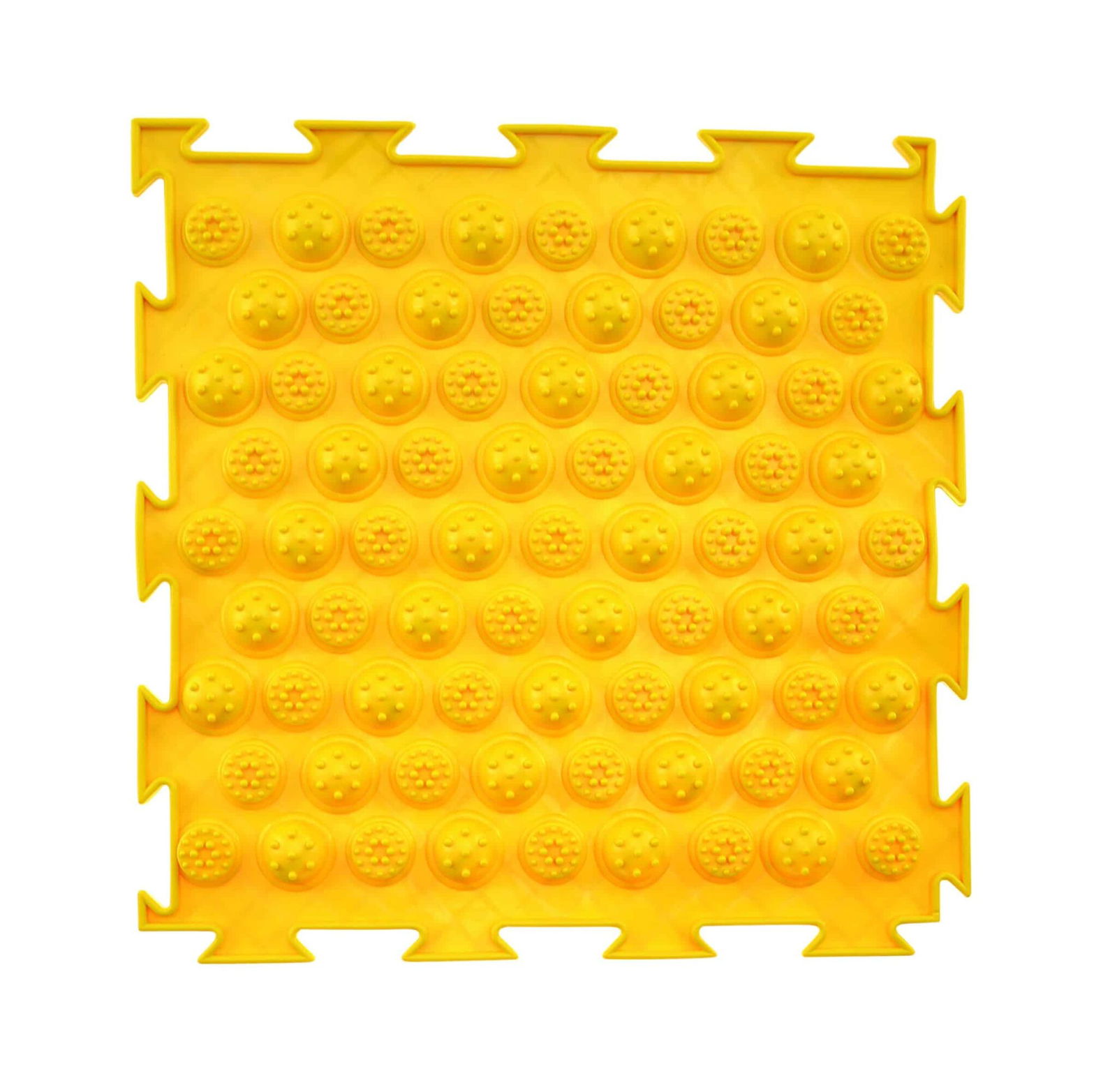 Jede Strukturmatte hat die praktischen Maße von 26 x 26 cm und bietet eine Vielzahl von Texturen und Farben, die dazu einladen, erkundet zu werden. Das Set umfasst folgende Farben: Orange, Hellgrün, Lila, Blau, Gelb und Mintgrün. Mit diesen lebhaften Tönen wird das Spielen noch aufregender und fördert gleichzeitig das Erkennen und Unterscheiden von Farben. Die sensorischen Elemente der Matten sind ideal für das Krabbeln, Balancieren und Spielen – eine perfekte Kombination für die körperliche und geistige Entwicklung.