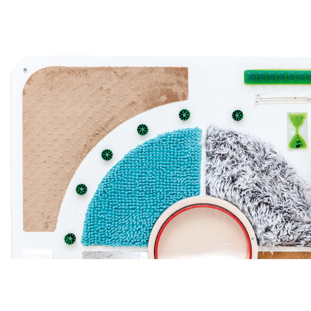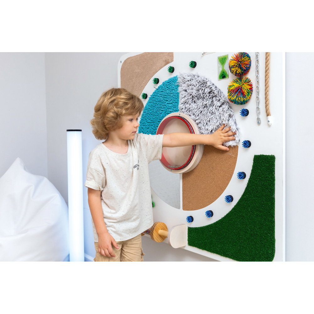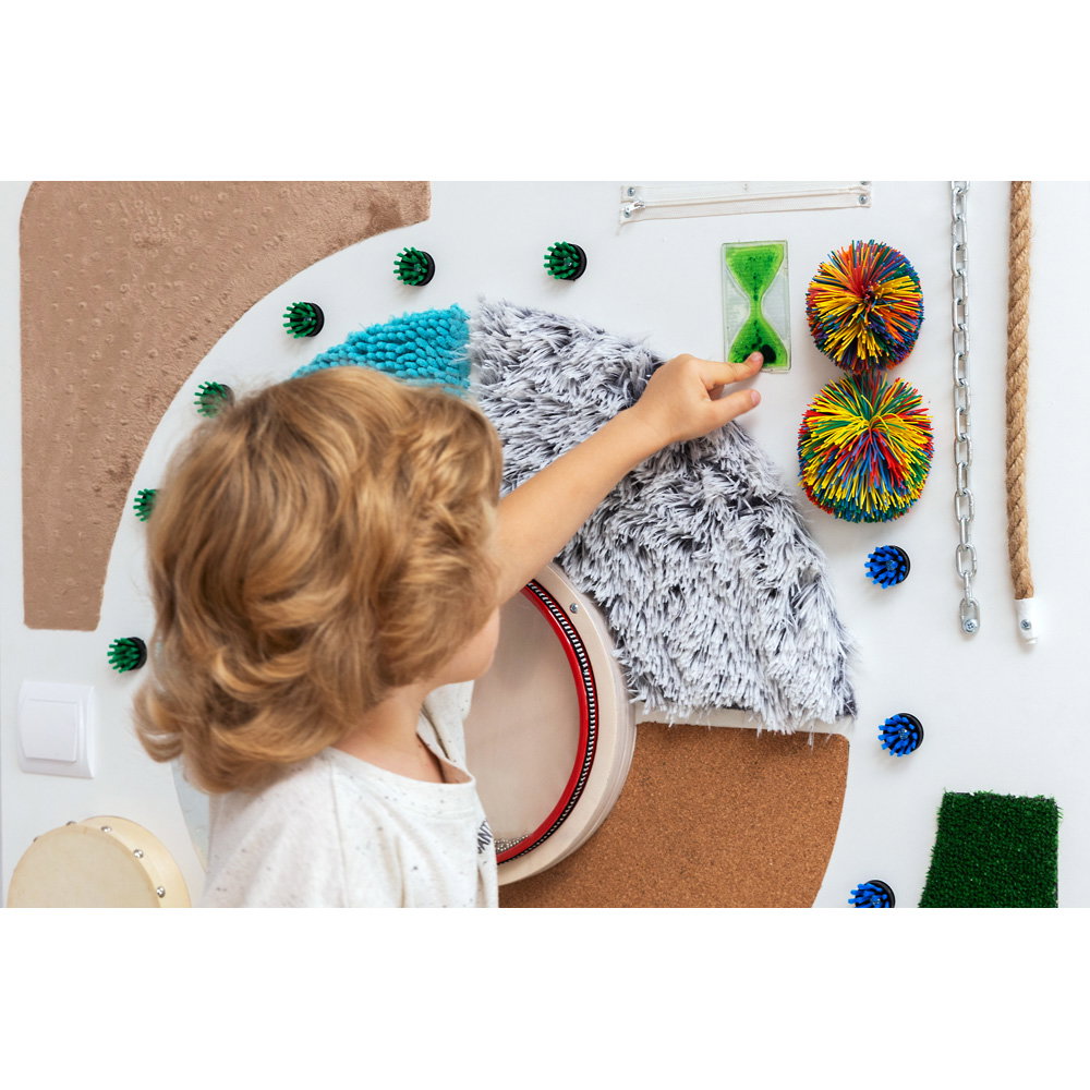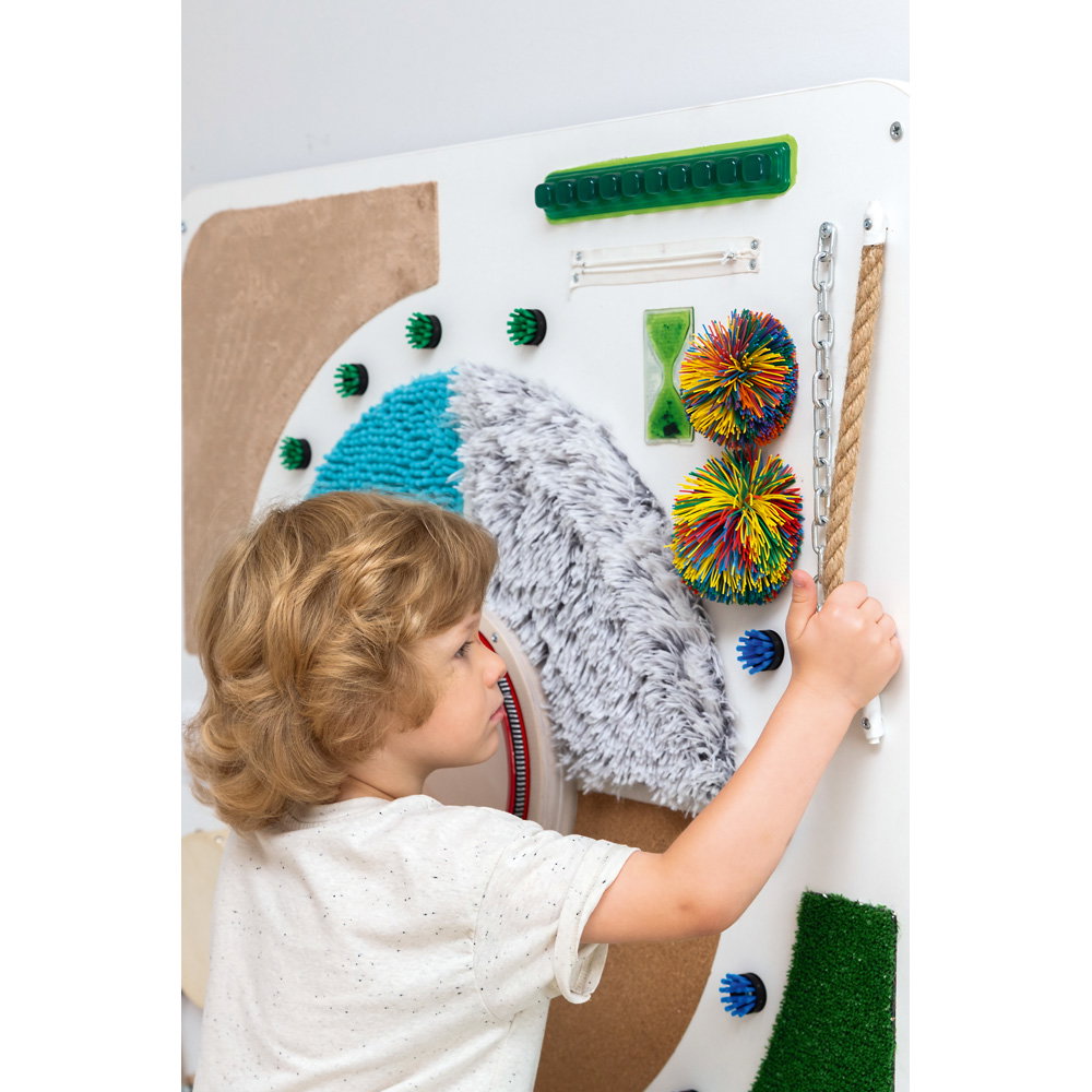 Stellen Sie sich eine Wand vor, an der es an jeder Ecke etwas Neues zu entdecken gibt: Hier knistert es, dort klingelt es, da fühlt es sich weich an und dort rau. Diese großformatige Beschäftigungswand lädt Kinder ab 2 Jahren dazu ein, auf Tuchfühlung zu gehen. Sie bietet eine faszinierende Mischung aus unterschiedlichsten Texturen, spannenden Klängen und beweglichen Elementen. Ob in der Kita, im Therapieraum oder im Wartebereich – diese Wand zieht kleine Entdecker magisch an und bietet ihnen eine sinnvolle, fokussierte Beschäftigung, die nie langweilig wird.
