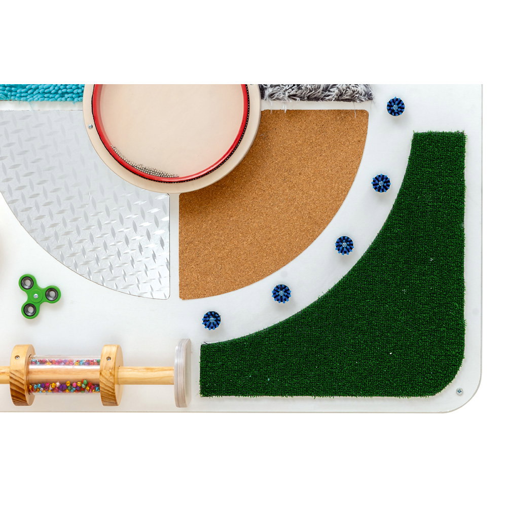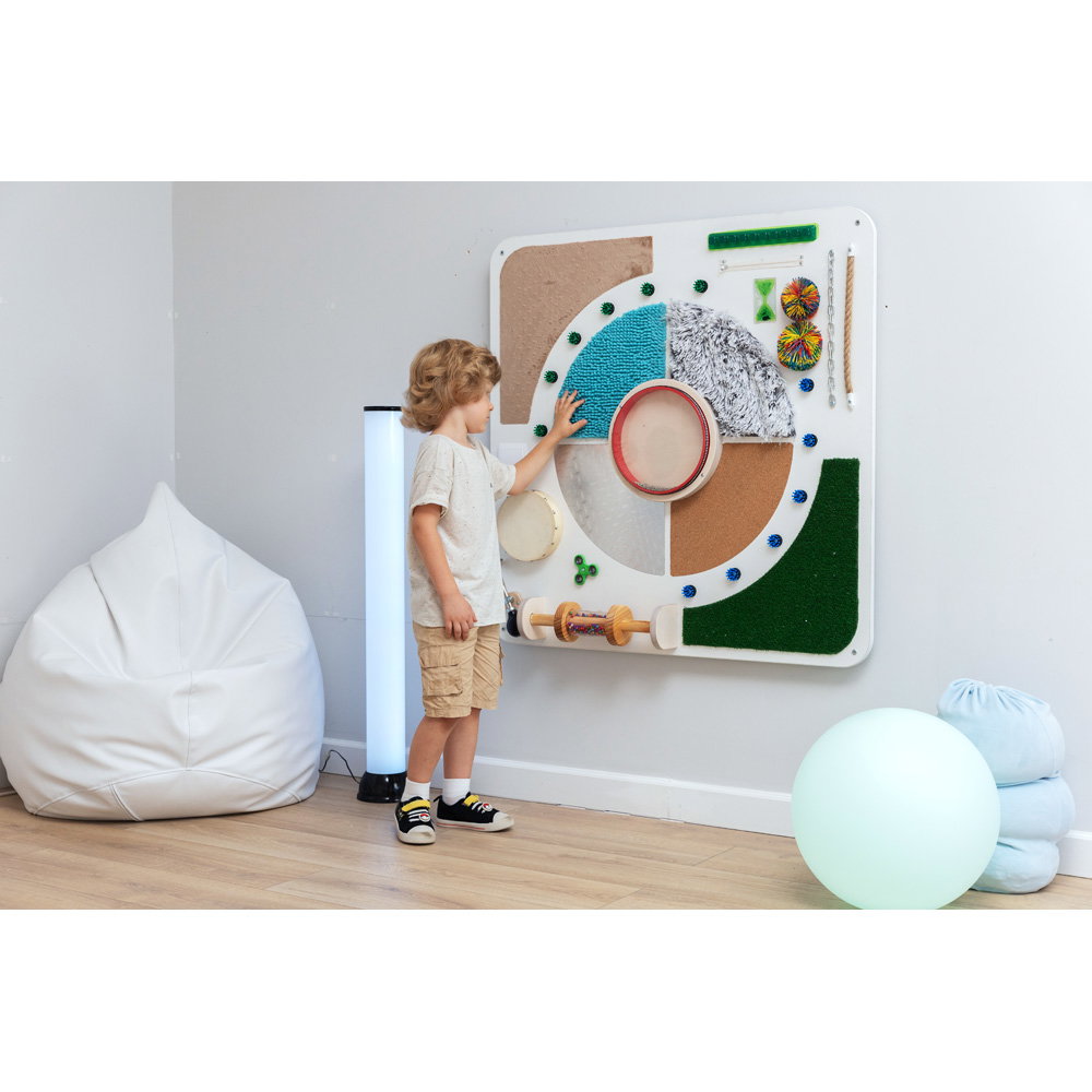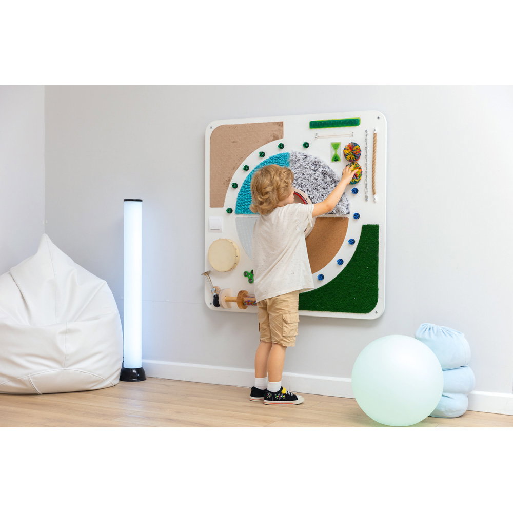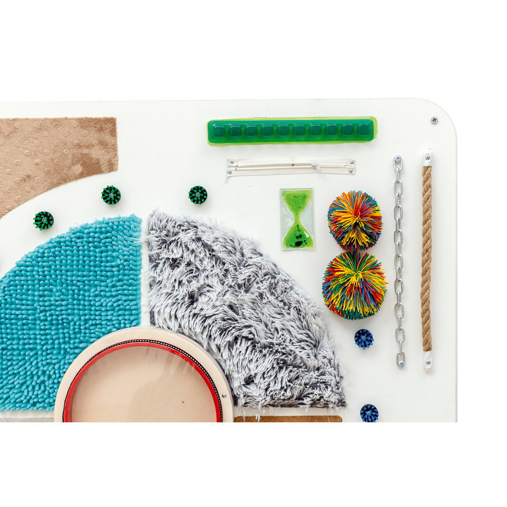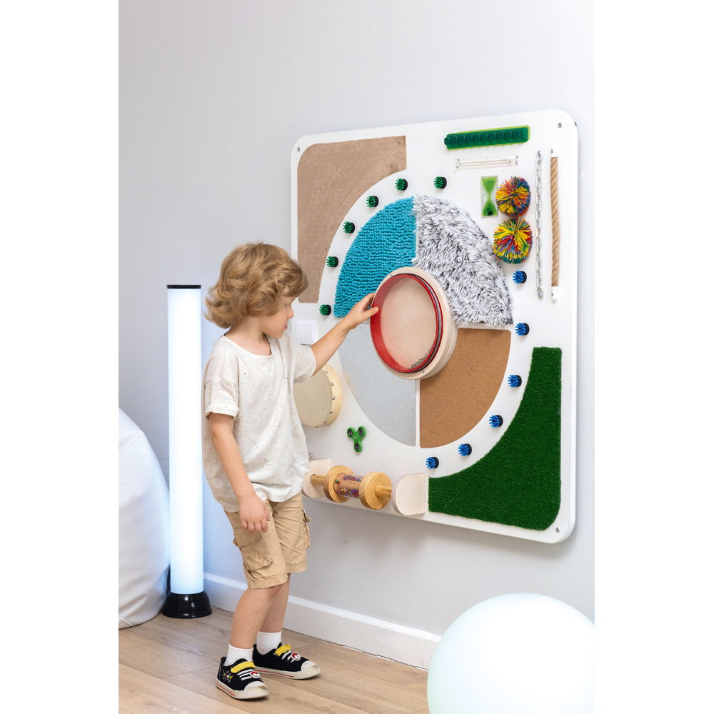 Stellen Sie sich eine Wand vor, an der es an jeder Ecke etwas Neues zu entdecken gibt: Hier knistert es, dort klingelt es, da fühlt es sich weich an und dort rau. Diese großformatige Beschäftigungswand lädt Kinder ab 2 Jahren dazu ein, auf Tuchfühlung zu gehen. Sie bietet eine faszinierende Mischung aus unterschiedlichsten Texturen, spannenden Klängen und beweglichen Elementen. Ob in der Kita, im Therapieraum oder im Wartebereich – diese Wand zieht kleine Entdecker magisch an und bietet ihnen eine sinnvolle, fokussierte Beschäftigung, die nie langweilig wird.