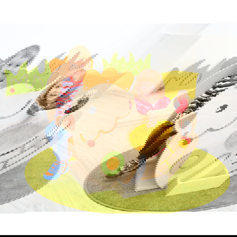 Die Sensorische Spielecke Huhn verbindet kindgerechtes Design mit wertvollen pädagogischen Impulsen für den Kita-Alltag.