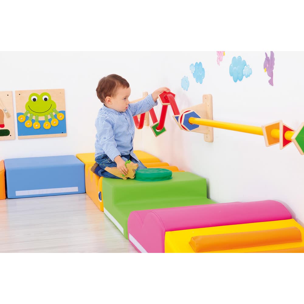 Das Steckelement mit Quietsche bietet zusätzlich akustische und haptische Reize, die die sensorische Entwicklung der Kinder fördern. Es lädt die Kleinsten ein, zu krabbeln, zu entdecken und spielerisch ihre Sinne zu schulen. Ideal für Krippen und Kindergärten, bietet diese Steckmatte eine sicherere und aufregende Spielumgebung.