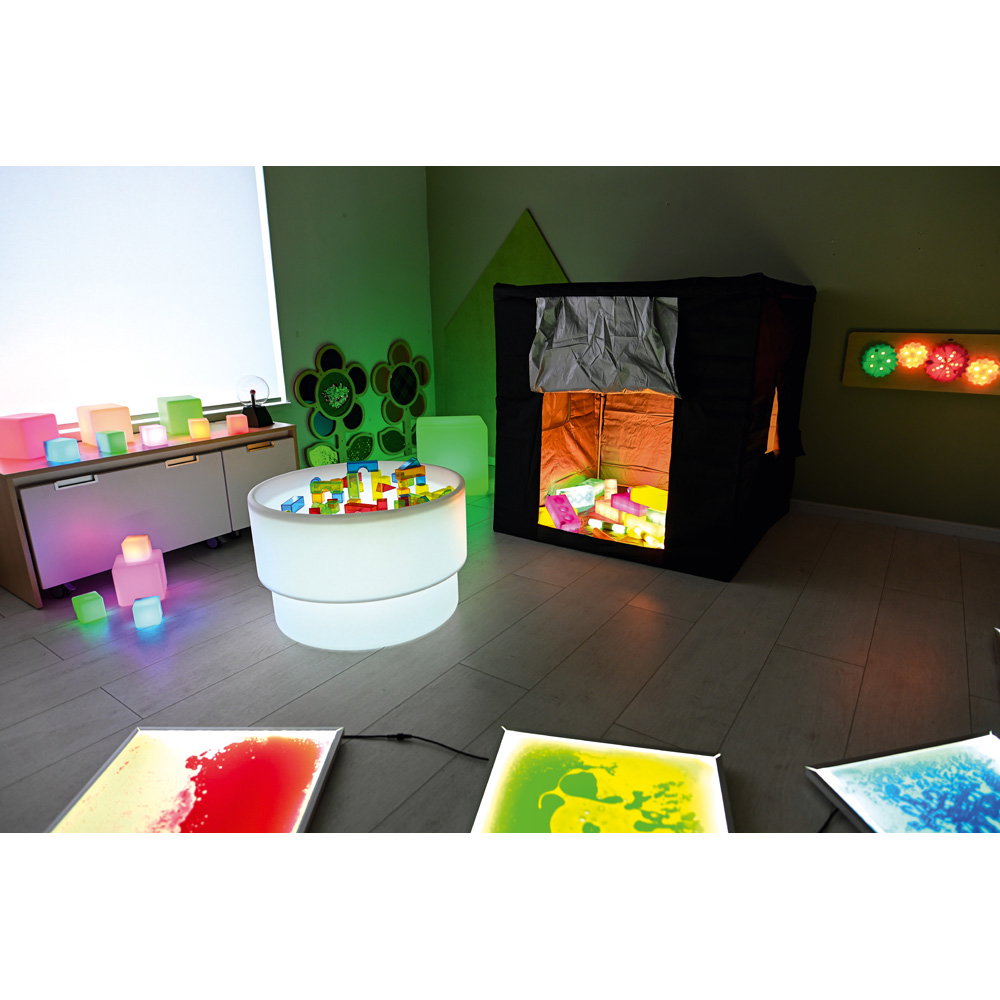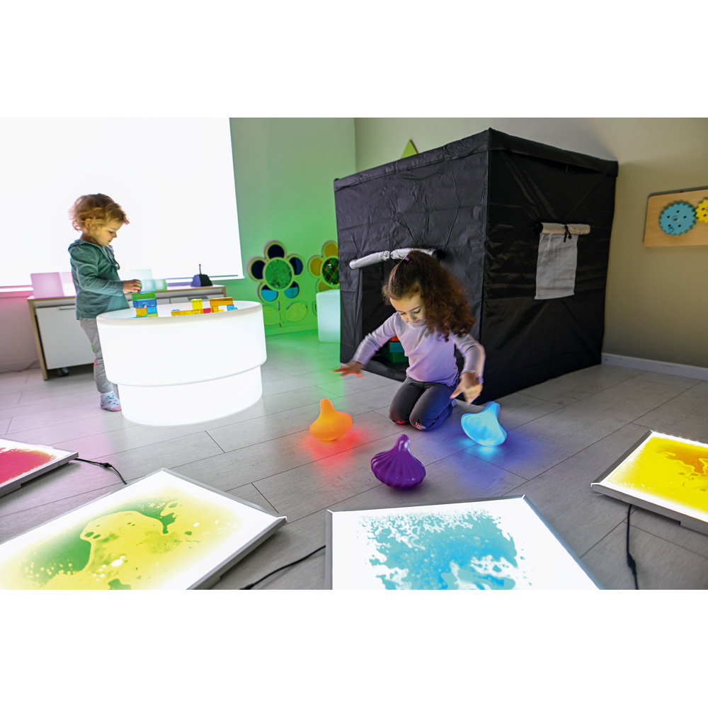 Ideal als zentrales Element im Snoezelraum, als Kuschelhöhle im Gruppenzimmer, als Lesezelt oder als beruhigender Ort bei Überstimulation.