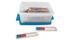 Die Rechenrahmen sind nicht nur ein Lernwerkzeug, sondern auch ein attraktives und ansprechendes Material für Kinder. Mit zwei gut greifbaren, farbigen Kugeln in rot und blau können die Schüler die Konzepte von Zahlen und Mengen leicht erfassen und unterwegs in der Schultasche mitführen. Die große Haptik der Kugeln – hergestellt aus nachhaltigem Biokunststoff – sorgt dafür, dass das Lernen Freude macht!