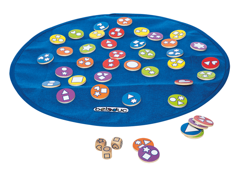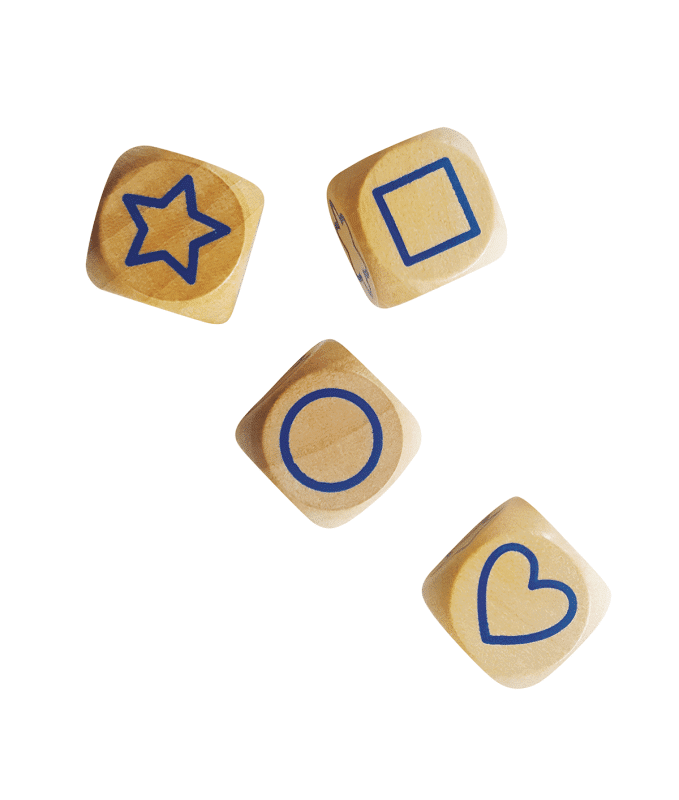 Die Spieler würfeln mit drei Formenwürfeln und müssen blitzschnell die gewürfelten Formen auf den bunten Plättchen finden. Hier kommt es nicht nur darauf an, schnell zu sein, sondern auch genau hinzusehen und die richtige Form im Eifer des Spiels zu erkennen! Shapy fördert die schnelle Auffassungsgabe und die Merkfähigkeit, während die Kinder aktiv und konzentriert bleiben.