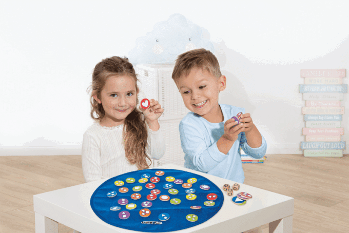 Bereit für ein aufregendes Farb- und Formenspiel? Mit Shapy erleben Kinder ab 4 Jahren jede Menge Spaß, während sie ihre Merkfähigkeit und Schnelligkeit trainieren. Hier dreht sich alles um die richtigen Formen! Wer wird der schnellste Spieler und schnappen sich die geworfenen Formen zuerst?