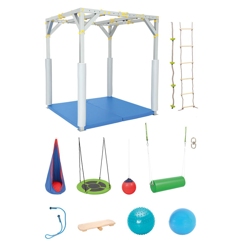 Mit 13 verschiedenen Komponenten deckt dieses Set nahezu alle Bereiche der sensorischen Integrationstherapie ab – von vestibulärer Stimulation über propriozeptives Training bis hin zur Förderung von Grob- und Feinmotorik. - Höchste Professionalität und Sicherheit