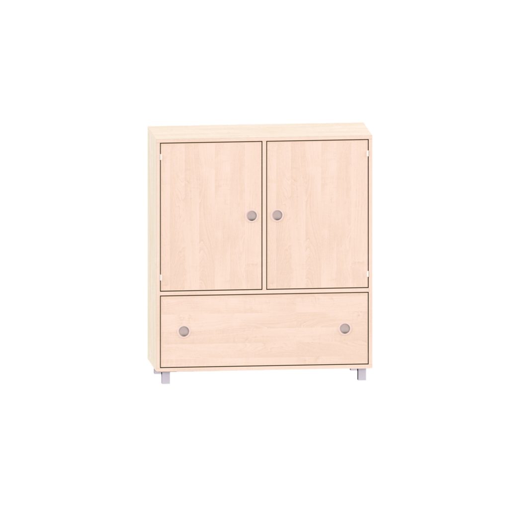 Sideboard mit 2 Böden, oben 2 Türen und unten ein Schubkasten für Kitas & Schulen