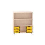 Sideboard mit 2 Böden, obere Fächer frei, unten links und rechts jeweils 4 ABS-Boxen, mittiges Fach frei für Kitas & Schulen