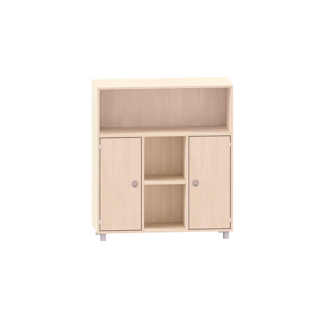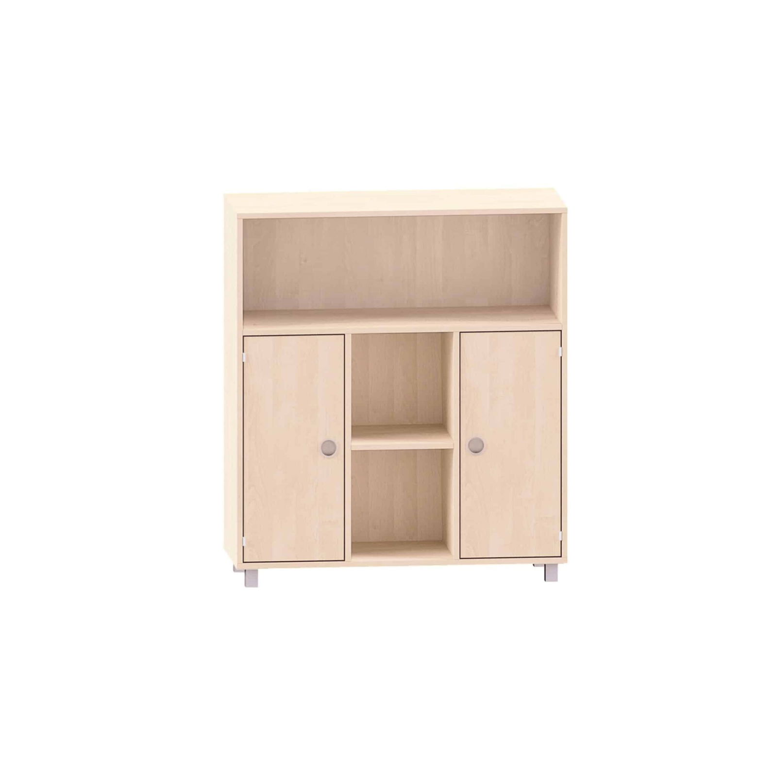 Sideboard mit einem großen Fach oben, 2 kleine Fächer in der Mitte und 2 mittlere Türen links und rechts für Kitas & Schulen