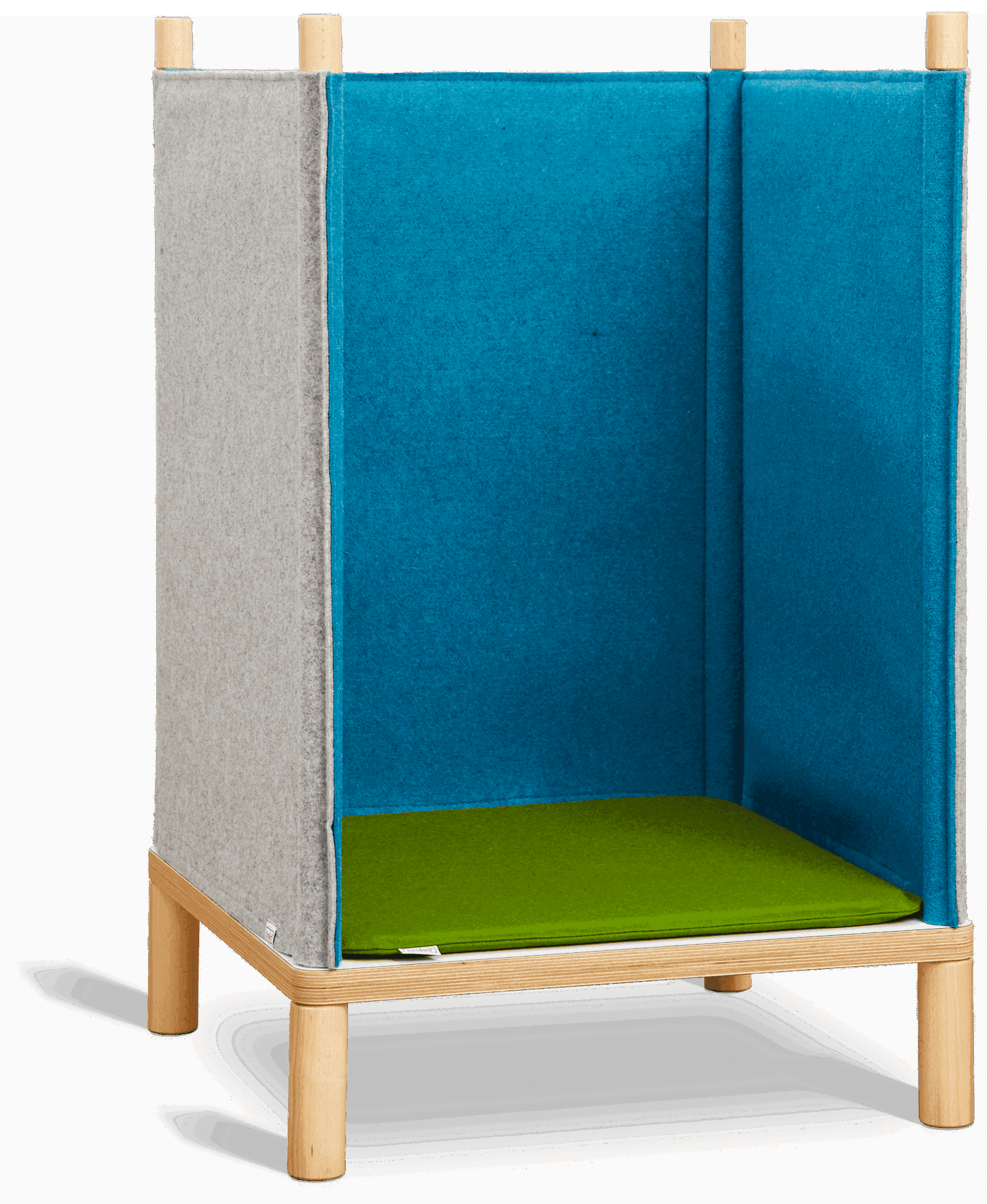 - Lieferumfang: 4 Möbelbeine, 4 Abschlussgriffe, 4 Stangen, 3-seitige Filzwand, 1 Kissen, 4 Kletthaken, 1 Basisplatte