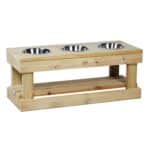 Wecken Sie die Neugier und den Forscherdrang von Kindern mit unserer vielseitigen Sinnesstation aus Holz! Dieses robuste, freistehende Spielmöbel ist eine Einladung, die Welt mit allen Sinnen zu begreifen. Ausgestattet mit drei separaten, herausnehmbaren Schüsseln, verwandelt es jeden Außenbereich in ein Labor für kreative Experimente. Ob beim Mischen von magischen Zaubertränken aus Wasser und Blättern, beim Sortieren von gesammelten Steinen oder beim Erfühlen unterschiedlicher Texturen wie Sand, Wasser und Erde – diese Station bietet unendlich viele Möglichkeiten für spielerisches Lernen und Entdecken.