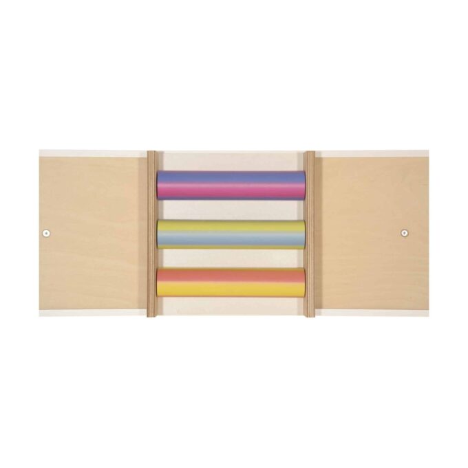 Das Sinneswand Einzelelement Farbmischrollen von Dusyma begeistert Kinder ab 18 Monaten mit einem einfachen und zugleich faszinierenden Prinzip. Drei robuste Walzen laden dazu ein, durch Drehen spielerisch verschiedene Farben zu mischen und spannende visuelle Effekte zu entdecken. Dieses außergewöhnliche Sinneserlebnis bringt nicht nur Spaß, sondern fördert auch die visuelle Wahrnehmung und das Verständnis für Farbenlehre auf eine intuitive Weise.