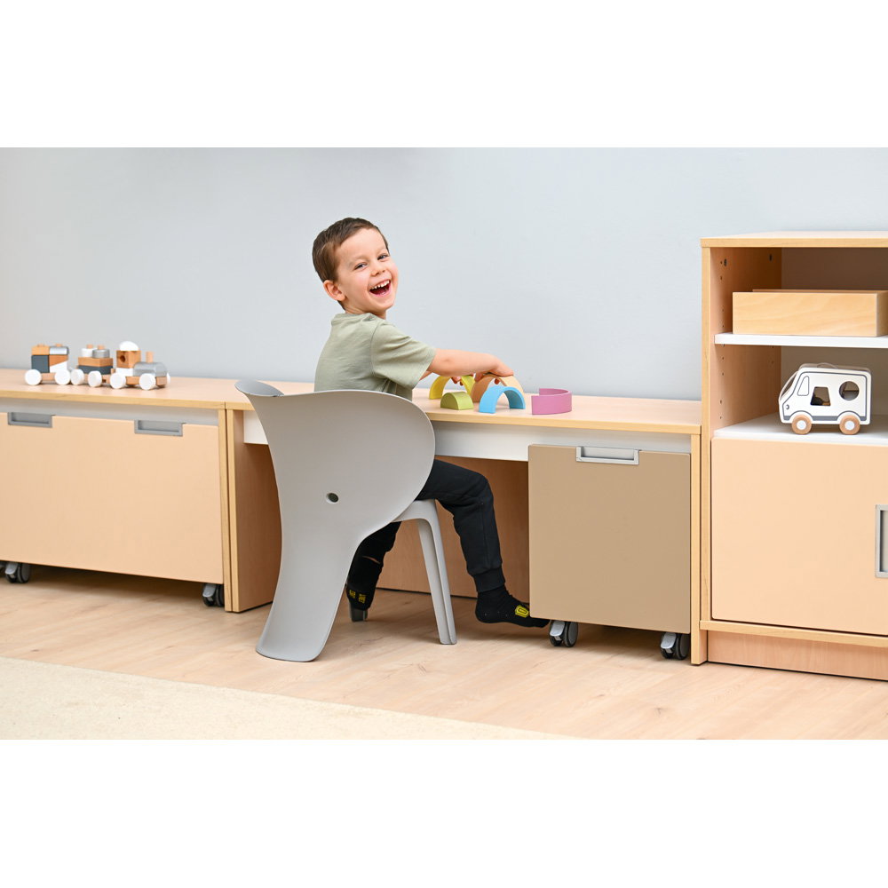 Die freundlichen Tierformen sprechen Kinder emotional an und integrieren sich nahtlos in das freie Spiel. Ein Sitzmöbel wird so schnell zum Reittier oder zum Zuhörer bei der Märchenstunde.