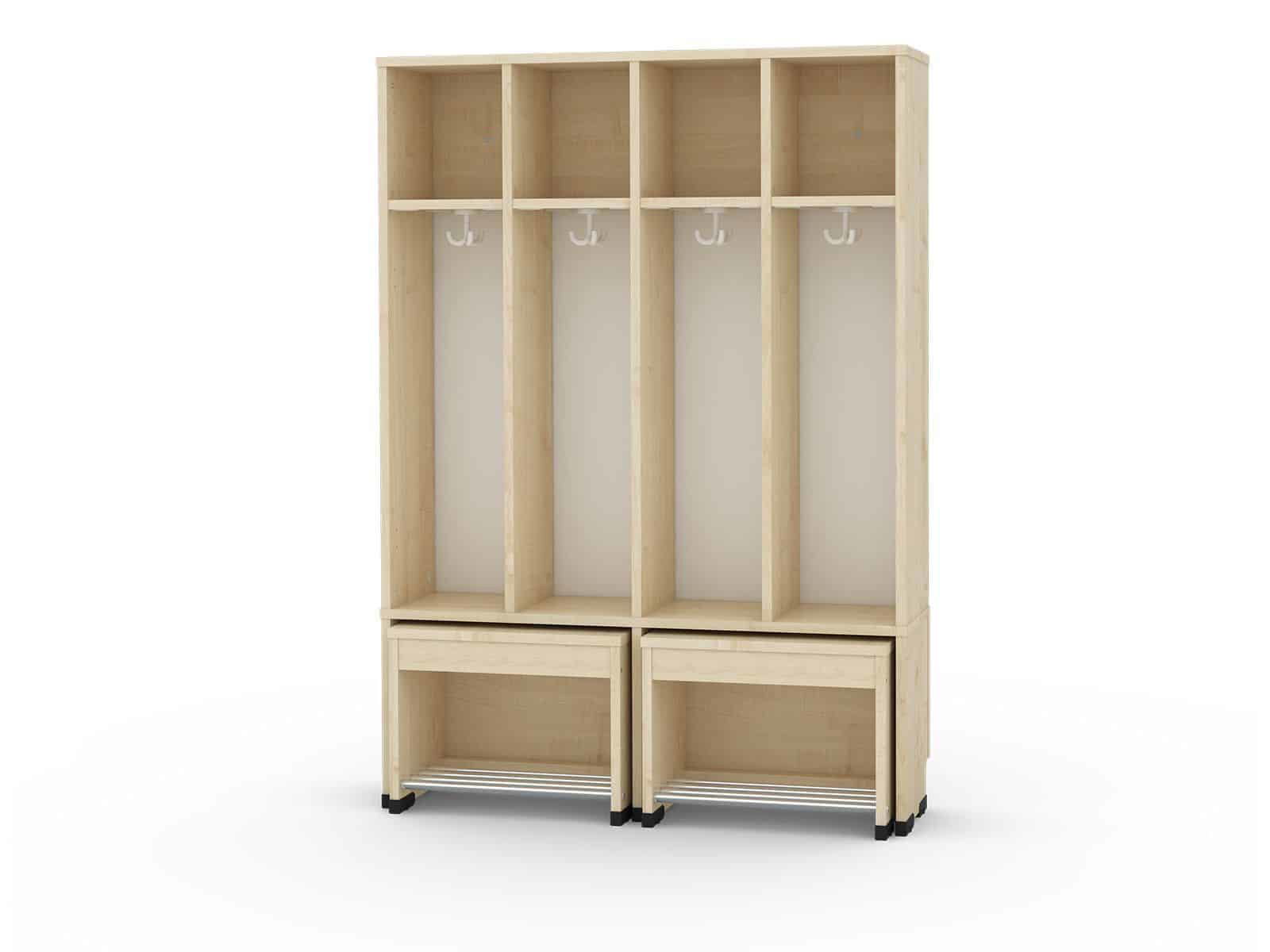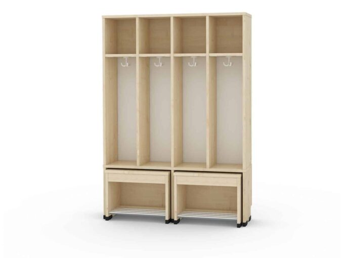 Sitz- und Stehgarderobe für 4 Kinder – schwer entflammbar für Kitas, Krippen und Kindergarten