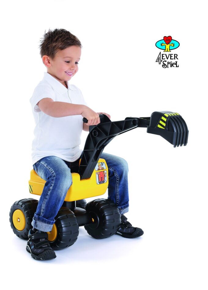 Der Mobby-Dig Sitzbagger, ein Inbegriff von Stabilität und Langlebigkeit, trägt mühelos bis zu 100 kg Gewicht. Aus hochqualitativem Kunststoff gefertigt, gewährleistet er ausdauernden Spielspaß. Das 360° drehbare Cockpit bietet einen ergonomisch geformten Sitz für optimalen Komfort. Für zusätzliche Sicherheit sorgen die breiten Räder, die festen Halt garantieren, und der Baggerarm, der sich fest einrasten lässt.