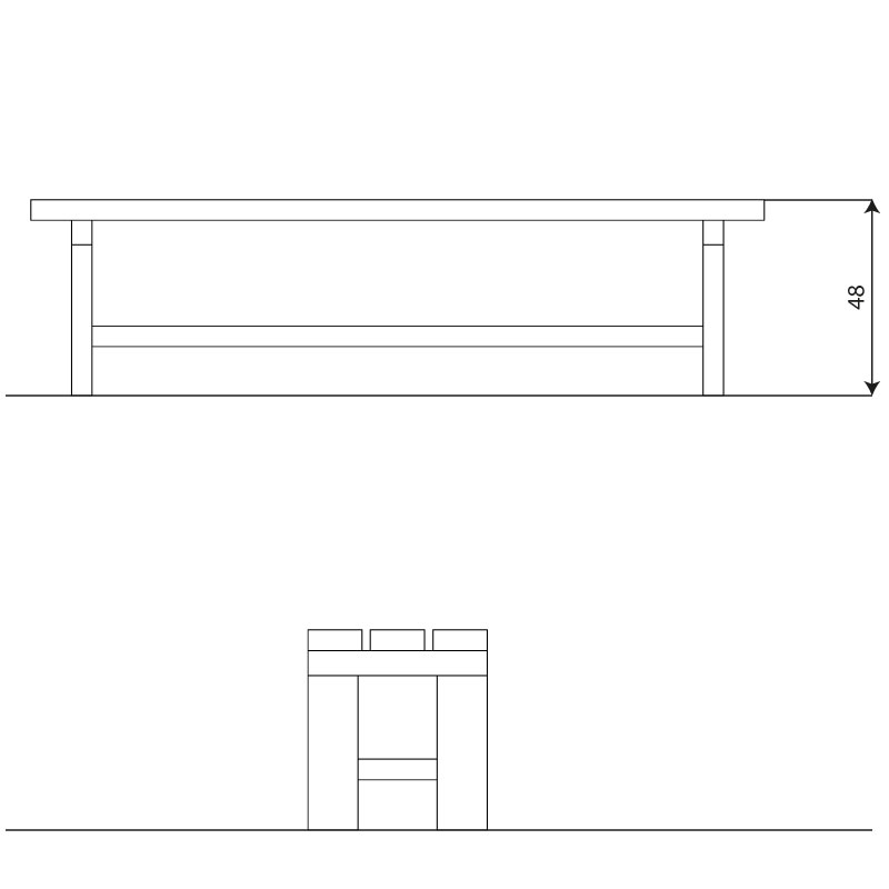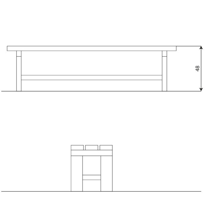 - Maße: Länge 180 cm x Breite 43 cm x Gesamthöhe 48 cm