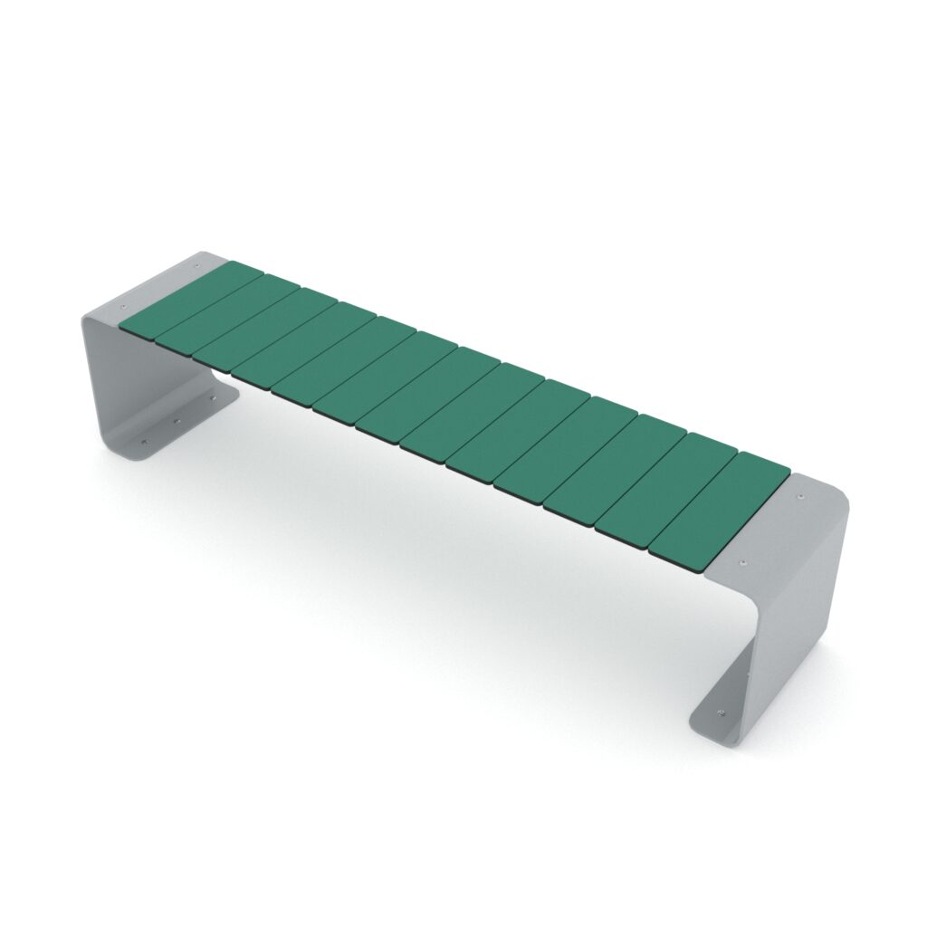 - Sitze/Rückenlehnen aus witterungsbeständigen recycelten HDPE-Platten, grüne HDPE-Platten aus 100 % recycelten Materialien, z.B. Meeresabfälle wie Fischernetze und Seile, Edelstahlschrauben und/oder Schrauben mit Plastikkappen