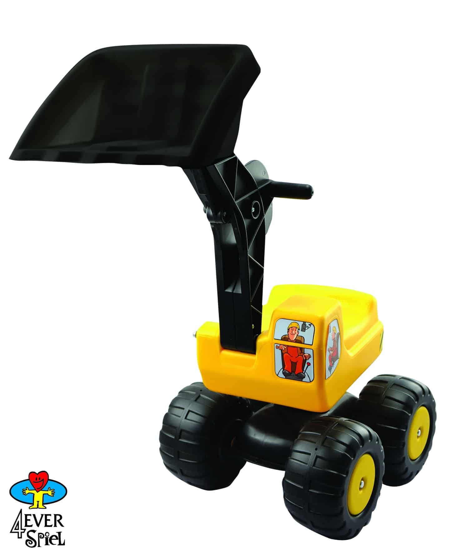 Der Sitzbulldozer Sitting-Bull, ein Inbegriff von Stabilität und Langlebigkeit, trägt mühelos bis zu 100 kg Gewicht. Aus hochqualitativem Kunststoff gefertigt, gewährleistet er ausdauernden Spielspaß. Das 360° drehbare Cockpit bietet einen ergonomisch geformten Sitz für optimalen Komfort. Für zusätzliche Sicherheit sorgen die breiten Räder, die festen Halt garantieren, und der Baggerarm, der sich fest einrasten lässt.