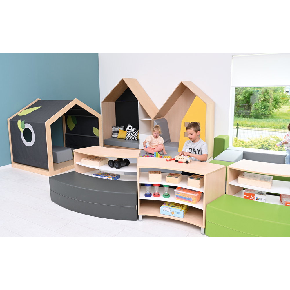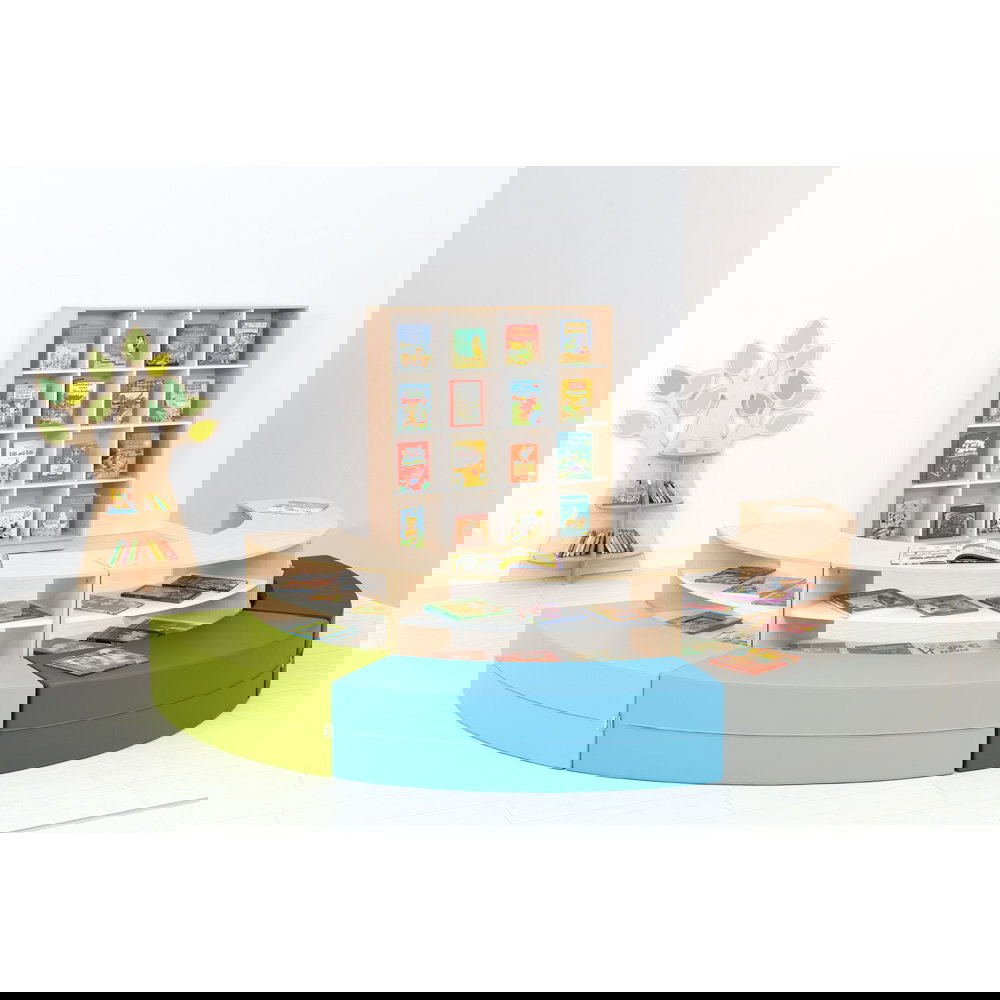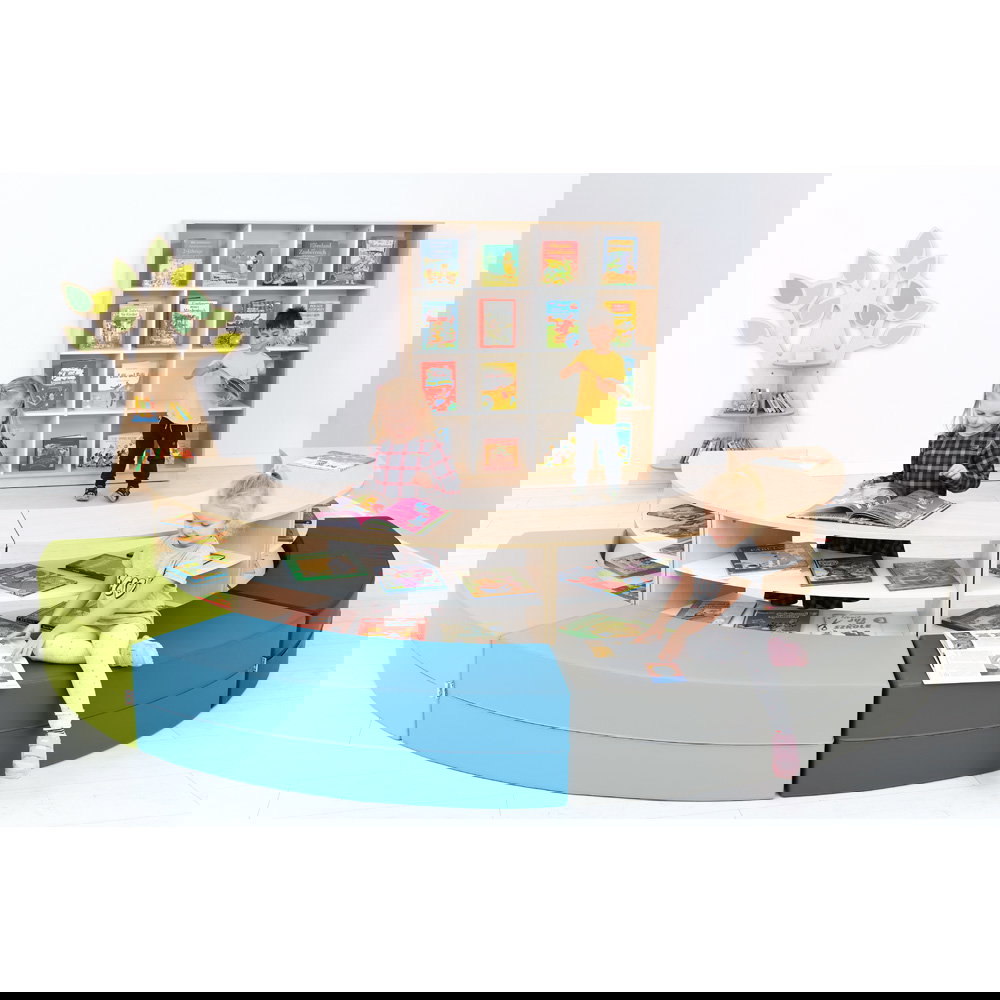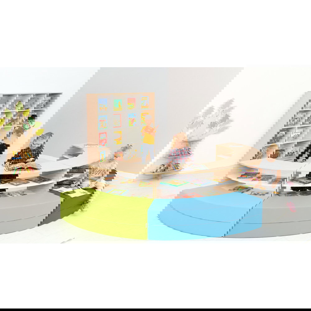 Eine strukturierte und ansprechende Umgebung bildet die Basis für konzentriertes Lernen und entspanntes Spielen. Die Sitzecke Paolo mit Schränken in frischen Limone-Grau-Tönen bietet Ihnen eine intelligente, modulare Lösung, um Räume funktional zu gliedern. Ob als gemütlicher Rückzugsort zum Lesen, als Ruhebereich oder als kommunikative Insel für Kleingruppen – diese clevere Kombination aus Stauraum und Sitzgelegenheit bereichert jeden Kindergarten und Hort.