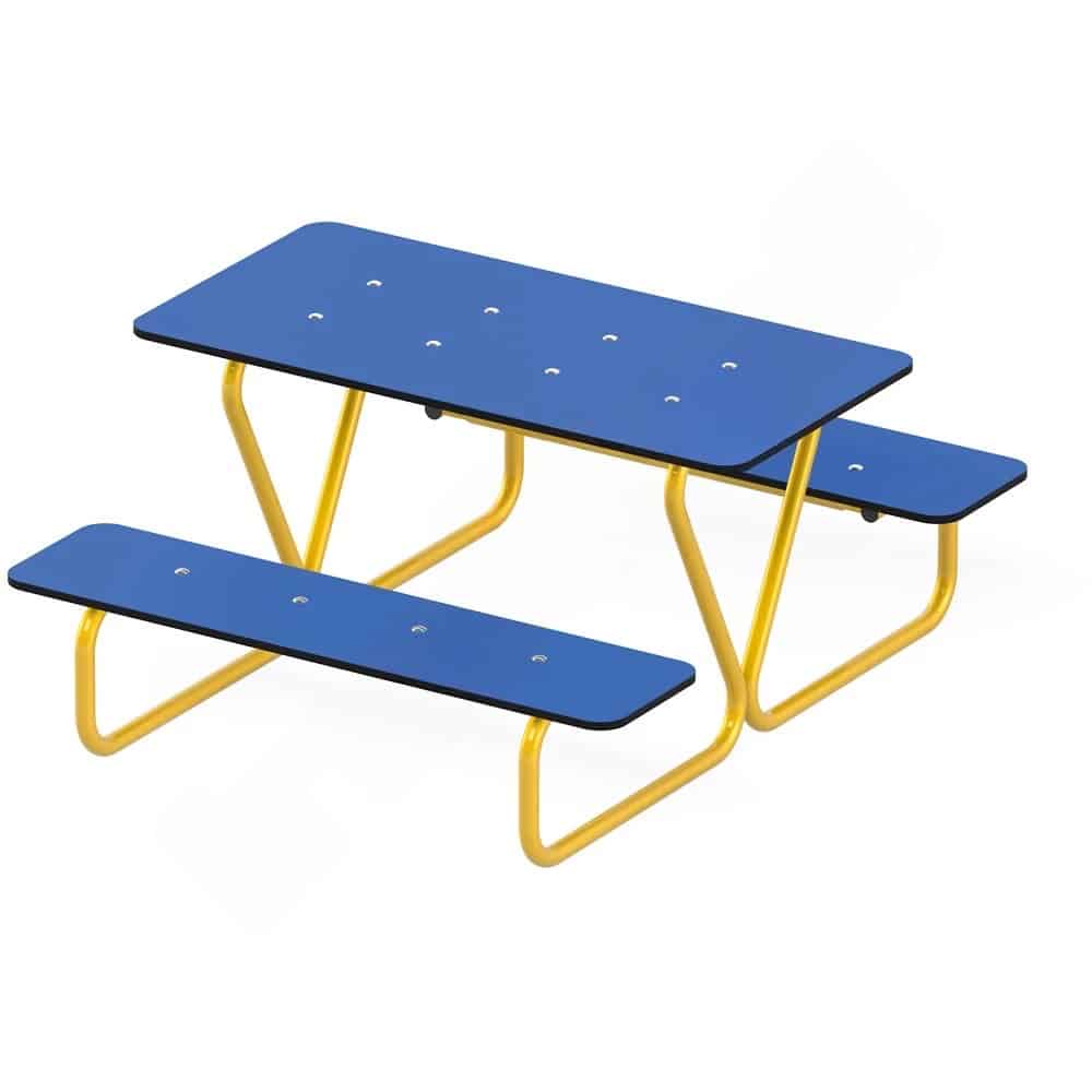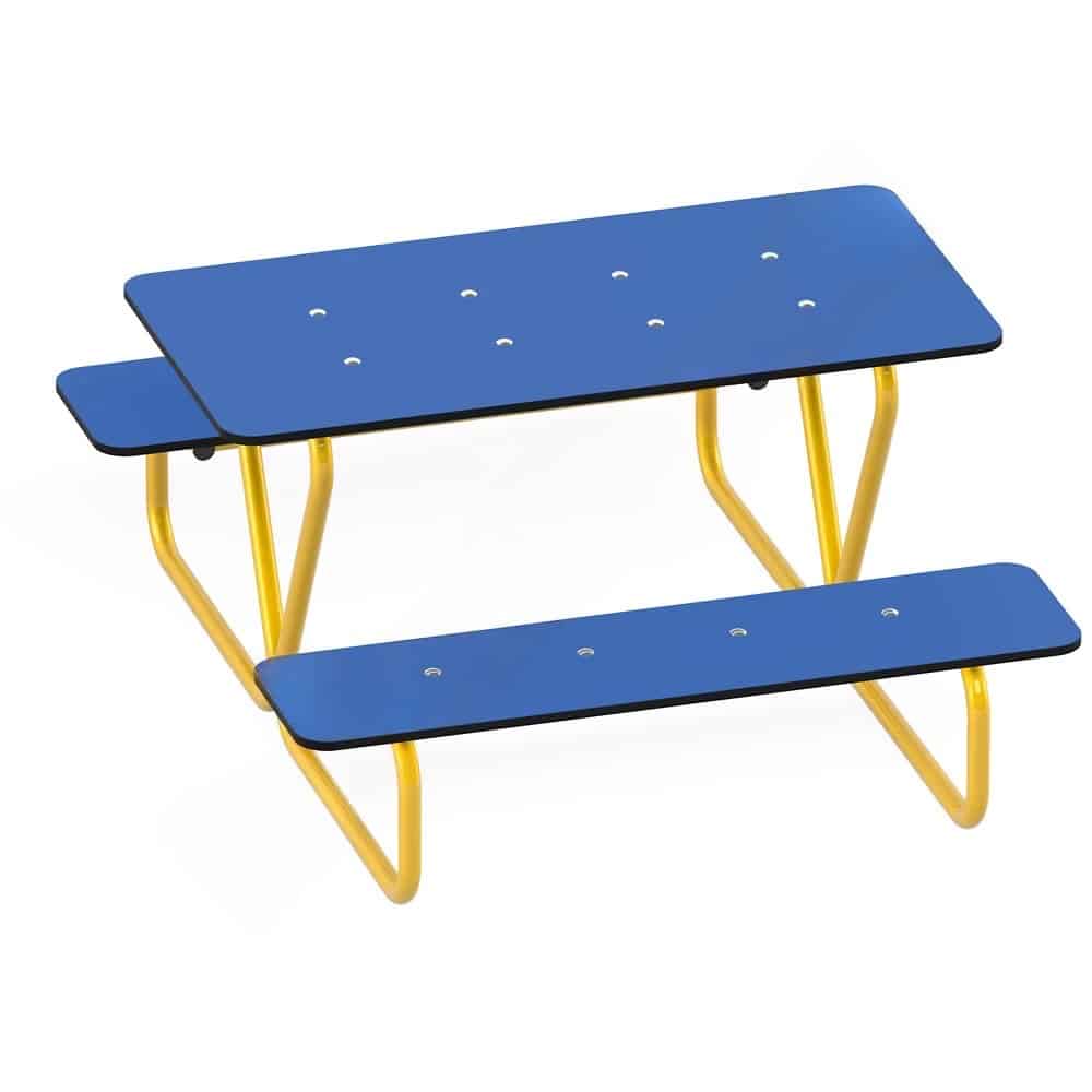 Hergestellt aus hochwertigen Materialien, vereint die Sitzgruppe Mikrus Stabilität und Langlebigkeit. Das Gestell aus verzinktem und pulverbeschichtetem Stahl sorgt dafür, dass die Gruppe robust und wetterfest ist. Die Tischplatte und die Sitzflächen aus HDPE sind nicht nur pflegeleicht, sondern auch UV- und witterungsbeständig. So bleibt die Sitzgruppe über Jahre hinweg ansprechend und zuverlässig, ganz gleich, wie aktiv die kleinen Entdecker sind!