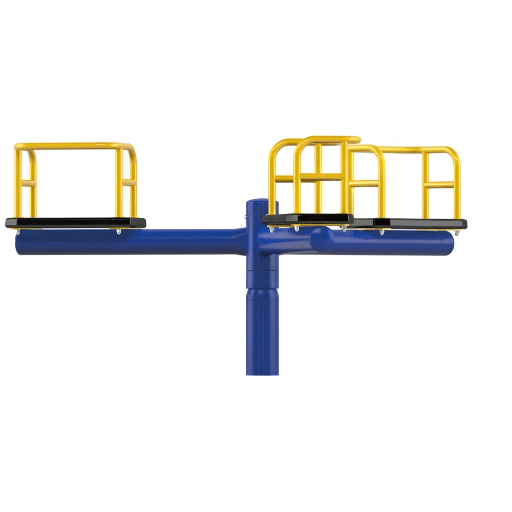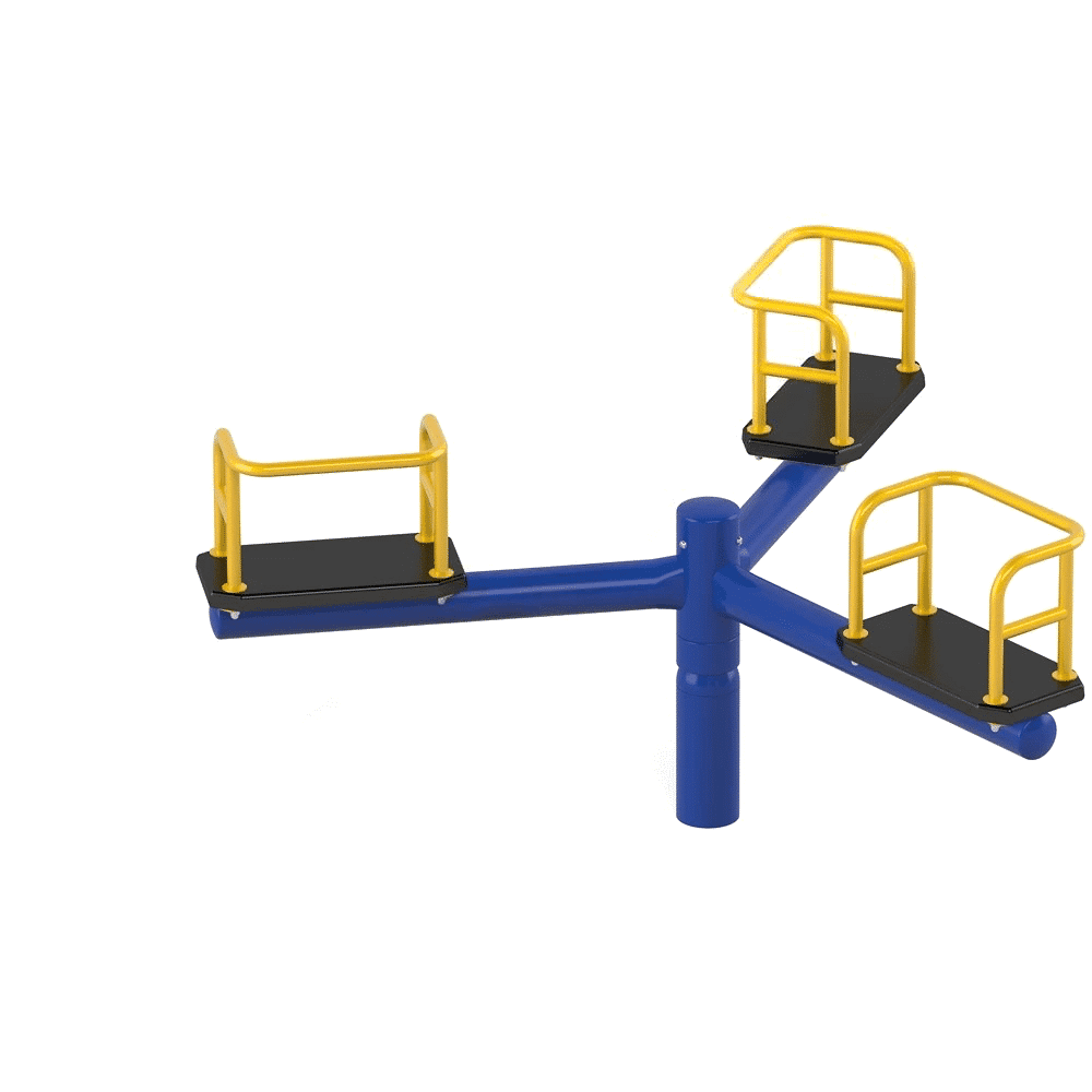 Das Twister-Karussell wird aus robustem verzinktem Stahl gefertigt und ist pulverbeschichtet, was für eine langanhaltende Wetterbeständigkeit sorgt. Die Plattform ist mit einer Antirutschbeschichtung ausgestattet, die für zusätzlichen Halt und Sicherheit sorgt.