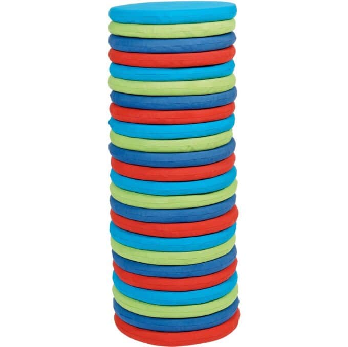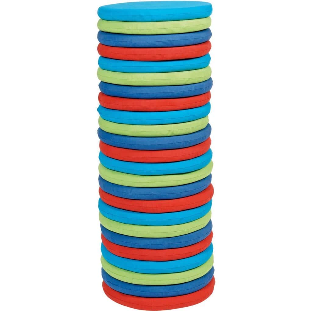 Vergessen Sie starre Stuhlkreise. Mit diesen leichten Kissen können Sie überall im Raum – oder sogar im Freien – komfortable Sitzgelegenheiten schaffen. Ob für den Morgenkreis, eine Vorlesestunde in der Kuschelecke oder eine Gruppenarbeit auf dem Boden, die Kissen lassen sich schnell verteilen und ebenso schnell wieder einsammeln. Diese Flexibilität ermöglicht eine dynamische und bedarfsgerechte Raumgestaltung. - Farbcodierung für einfache Organisation