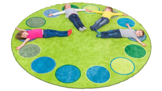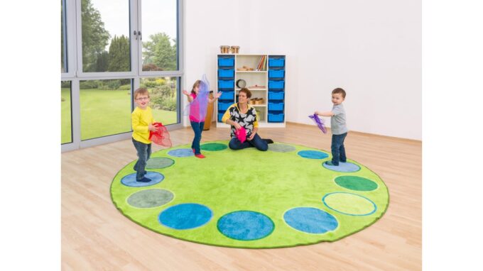 Gestalten Sie Ihre Gruppenräume funktional und stilvoll – Jetzt den Betzold Sitzkreis-Teppich „Dots“ entdecken!