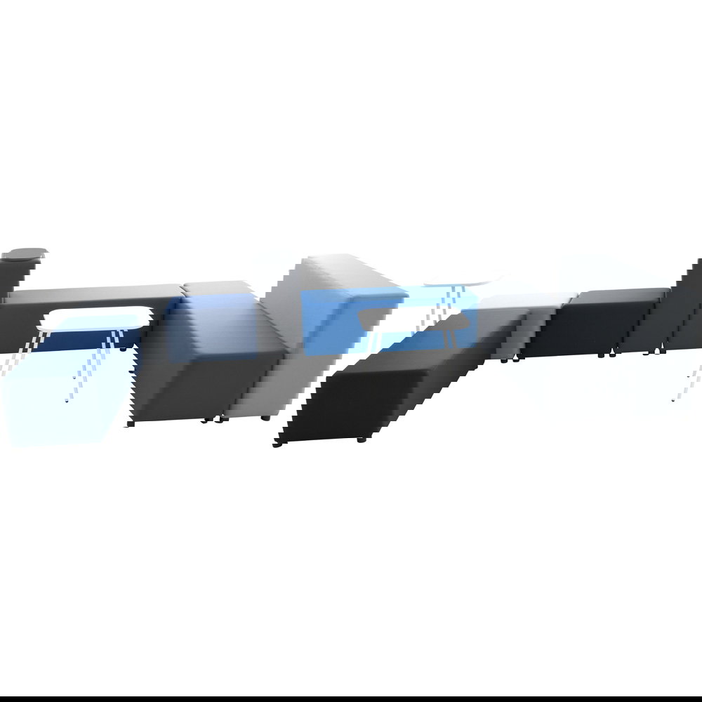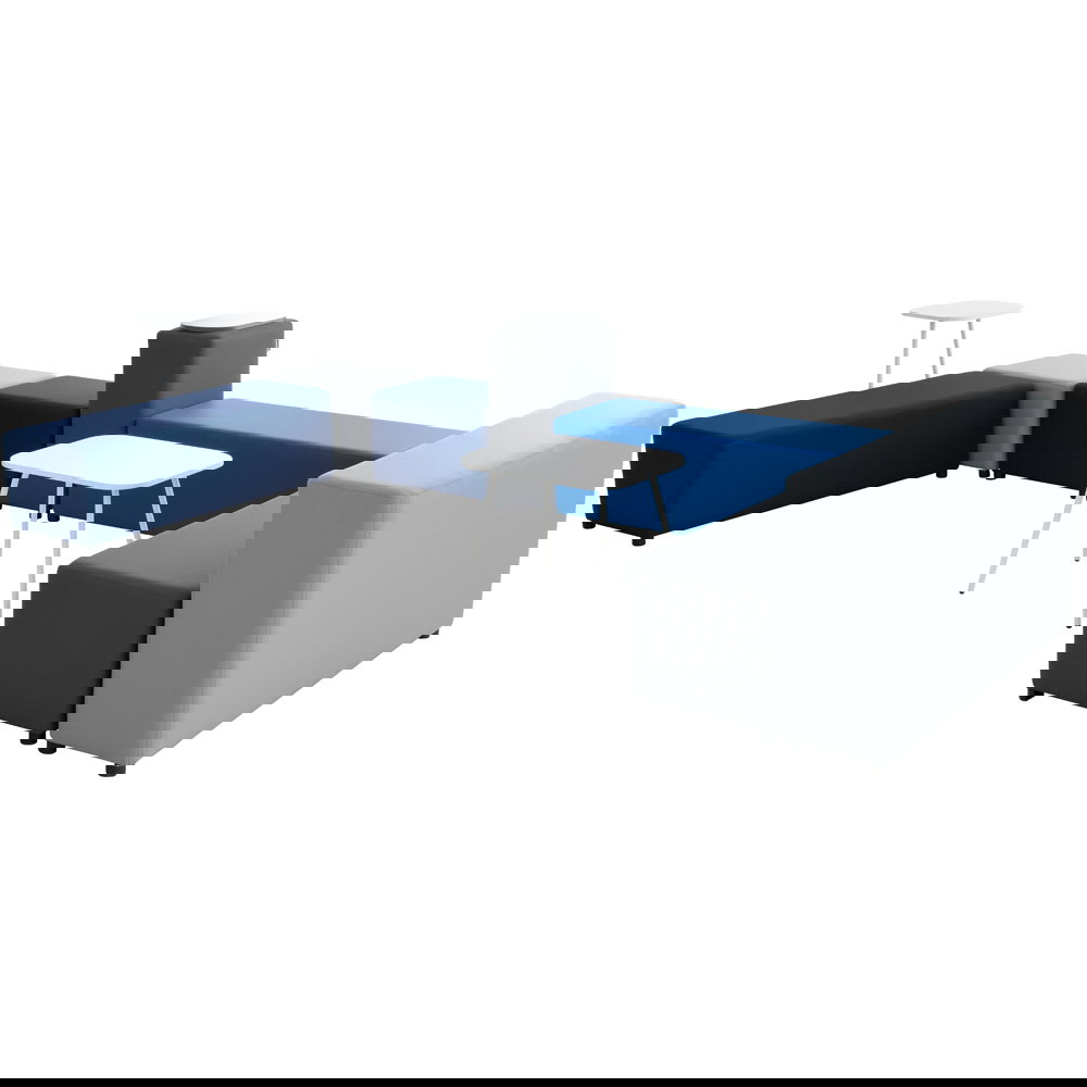 Das Herzstück dieses Sets bilden fünf großzügige Sitzelemente und zwei stützende Lehnen, die eine entspannte und kommunikative Atmosphäre fördern. Die Landschaft wird durch zwei weiße Tische perfekt ergänzt: Ein niedriger Tisch mit vier Beinen (50 Zentimeter Höhe) bietet eine ideale Ablagefläche für entspannte Pausen, während ein höherer Tisch mit Ringfuß (74 Zentimeter Höhe) als komfortabler Arbeitsplatz dient. Sieben robuste Möbelklemmen fixieren die einzelnen Bausteine absolut sicher und rutschfest. Mit einer beeindruckenden Gesamtbreite von 3,75 Metern, einer Tiefe von 190 Zentimetern und einer Höhe von 74 Zentimetern fungiert dieses Set als zentraler Ankerpunkt im Raum. Wenn Sie fokussierte Rückzugsorte etablieren möchten, lässt sich die Landschaft jederzeit problemlos mit schalldämmenden Trennwänden der Blocks-Kollektion erweitern.