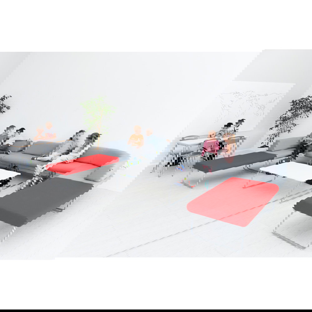 Weite Flure, offene Empfangshallen und stark frequentierte öffentliche Gebäude sind oft von ständiger Bewegung geprägt. Die Sitzlandschaft Flow 5 bietet Ihnen die ideale Lösung, um genau hier gezielte Zonen der Entspannung zu etablieren. Dieses durchdachte System aus fünf Modulen neutralisiert hektische Raumsituationen auf natürliche Weise und bietet Ihren Besuchern einen bequemen Ort zum Verweilen. Das offene, einladende Design der Elemente fördert den Dialog und trägt maßgeblich zu einem entspannten, positiven sozialen Klima bei.