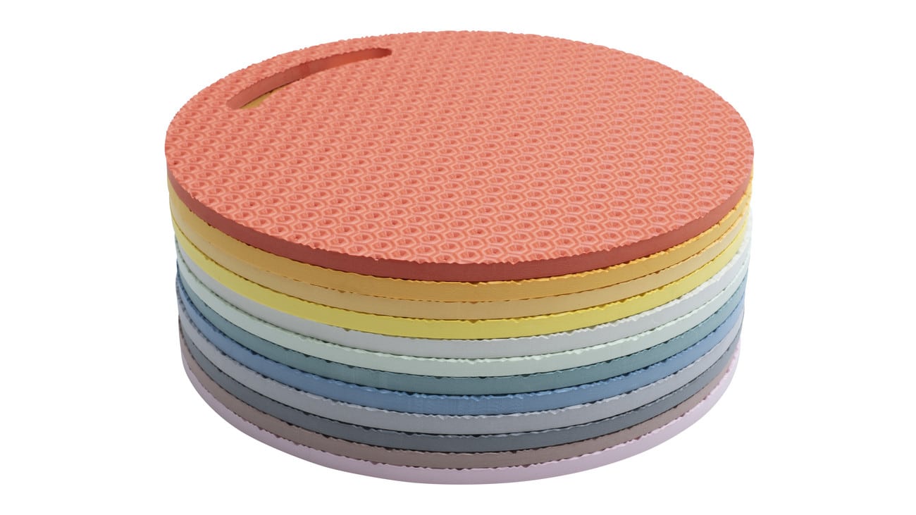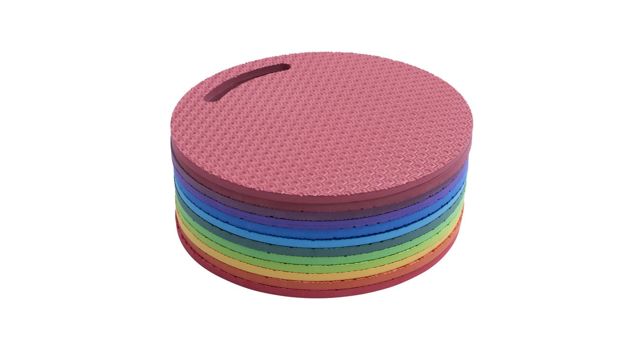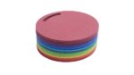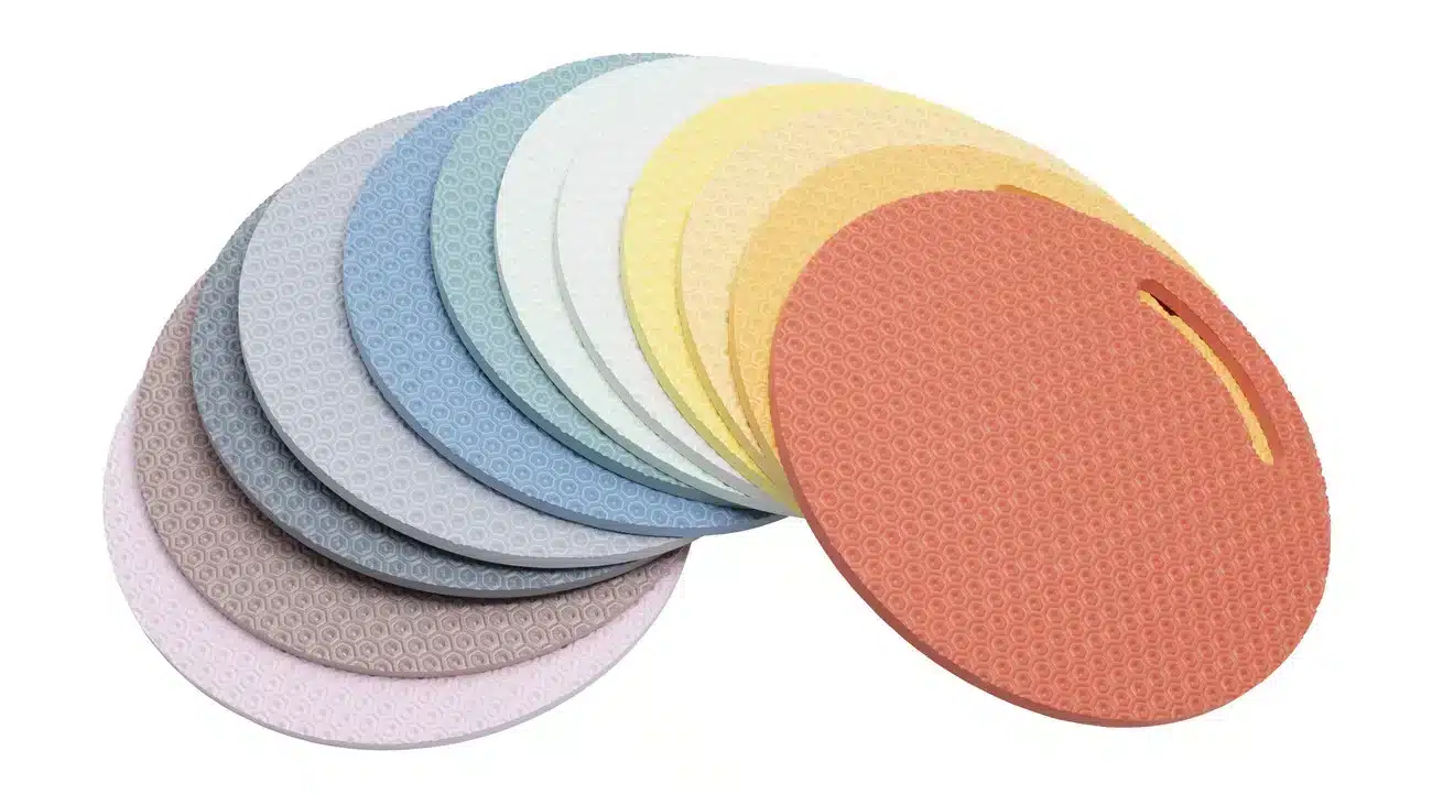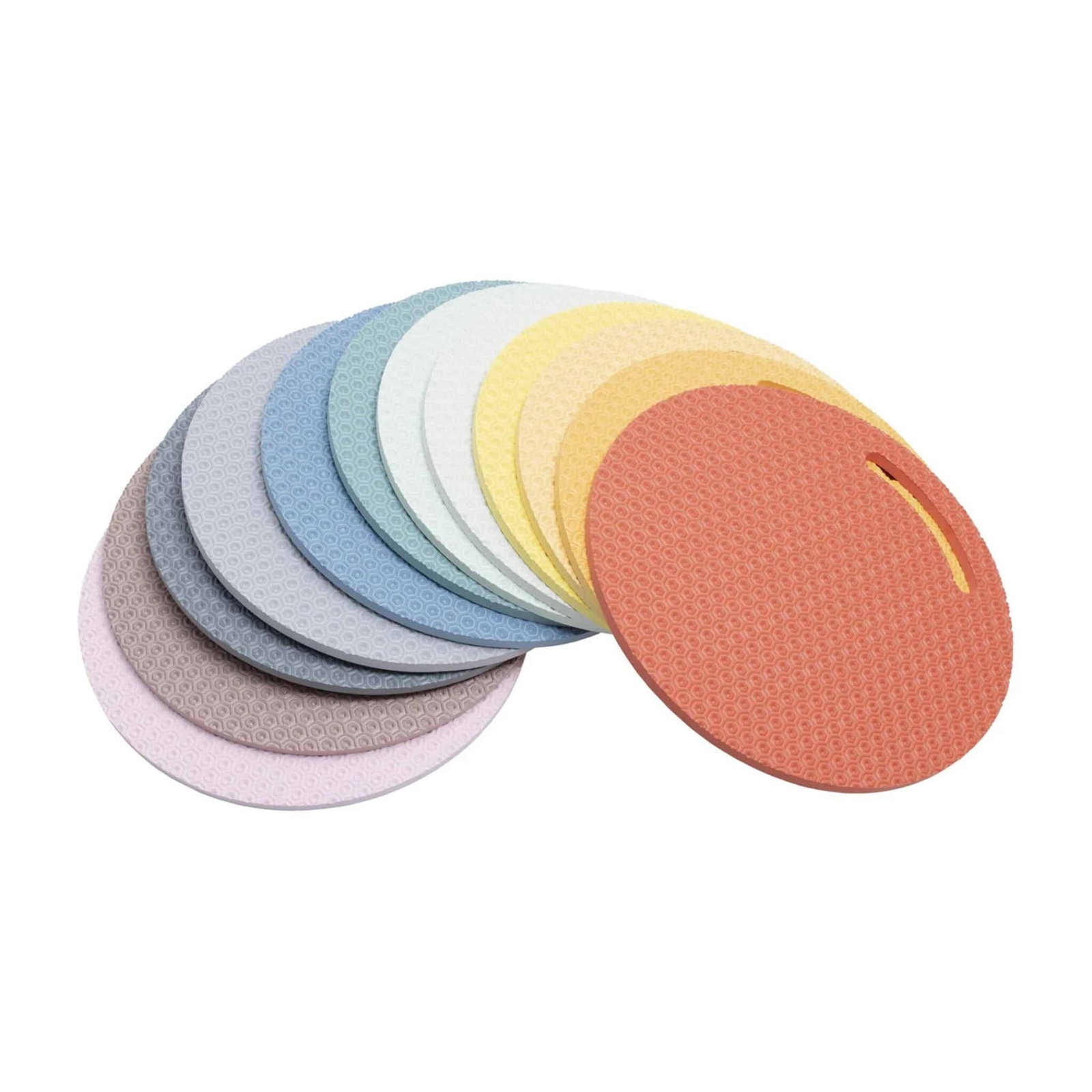 Die Sitzmatten beeindrucken nicht nur durch ihre frischen Farben, sondern auch durch ihre durchdachte Funktionalität. Jede Matte hat sowohl eine glatte als auch eine genoppte Seite – ideal für einen sicheren Halt, egal welche Aktivität geplant ist. Mit einem Durchmesser von 35 cm und einer Höhe von ca. 1,2 cm bieten sie eine angenehme Polsterung, die das Sitzen bequem macht.