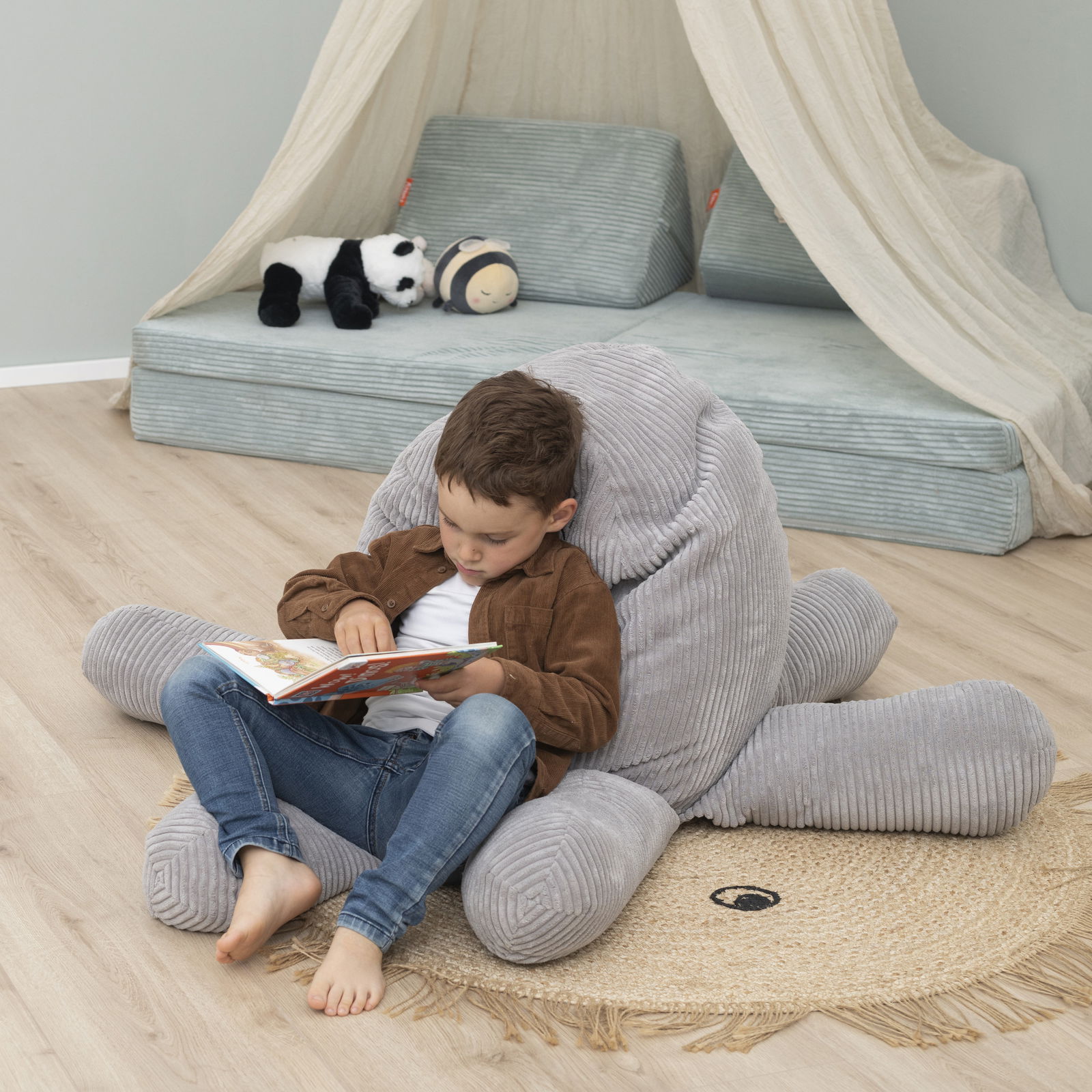 Kinder lieben es, umschlungen und gehalten zu werden. Die acht weichen Tentakel der Krake simulieren eine dauerhafte Umarmung und schaffen so ein tiefes Gefühl von Sicherheit. Ob beim Vorlesen, Ausruhen nach dem Toben oder einfach nur zum Träumen: In Karls Armen fühlen sich die Kleinsten sicher und geborgen. Zudem bieten die vielen Arme genug Platz, damit auch Geschwister oder Freunde gemeinsam kuscheln können. - Ergonomischer Sitzkomfort