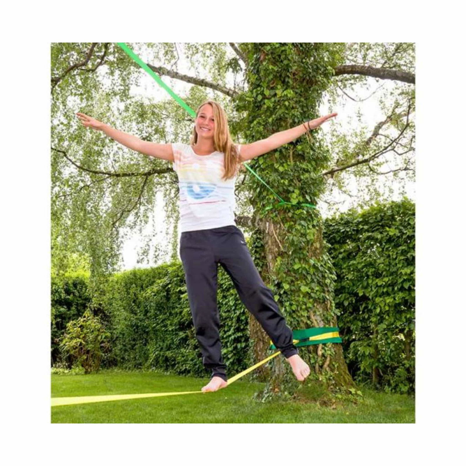 - Aktive Beschäftigung: Slacklining ist ein hervorragendes Training für Ausdauer und Kraft und hält die Kinder aktiv.