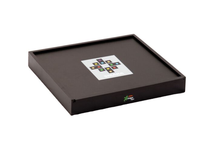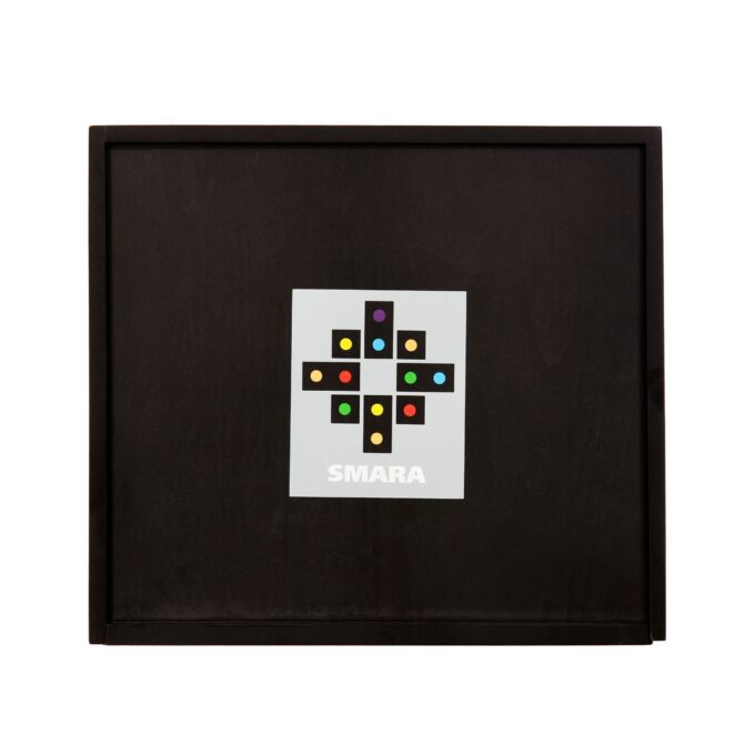 Mit seinen zahlreichen Komponenten bereitet das Smara-Spiel bereits Kindern im Kindergartenalter bis hin zu älteren Schülern in der Schule oder im Hort bei jedem Zug Freude. Die farbenfrohen Holzsteine, verziert mit Acrylsteinen in Regenbogenfarben, eröffnen eine Fülle an Spielmöglichkeiten für Einzelspieler oder Gruppen von bis zu fünf Teilnehmern. Insgesamt sechs verschiedene Steinformen, darunter Winkel und Rechtecke, sind zusammen mit der Spieleanleitung und zwei Filzunterlagen in einer ansprechenden schwarzen Holzbox mit Schiebedeckel verpackt, die mit den Maßen 34,8 cm Breite, 38,8 cm Länge und 3,9 cm Höhe kompakt und ordentlich verstaut werden kann.