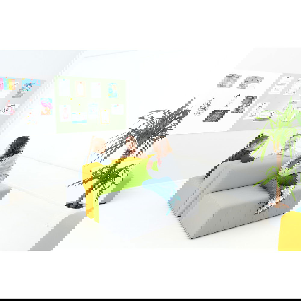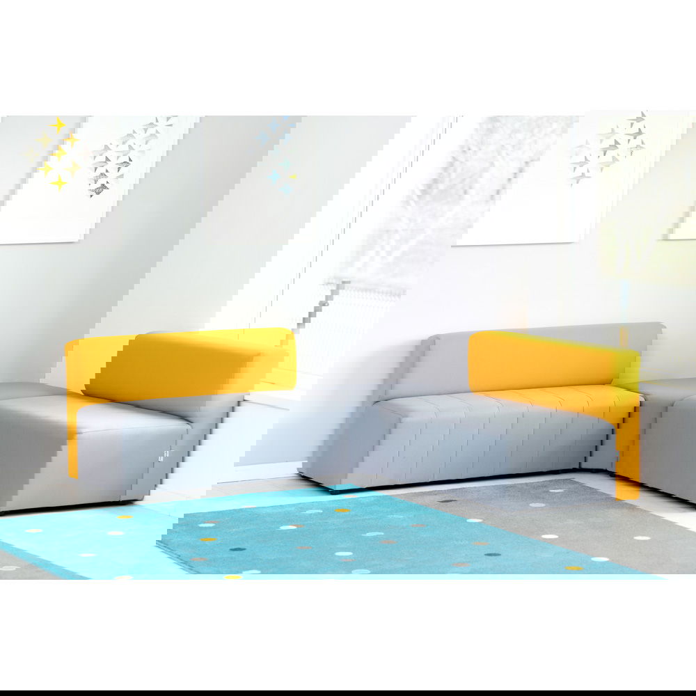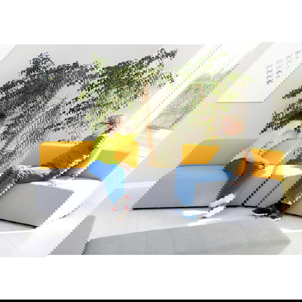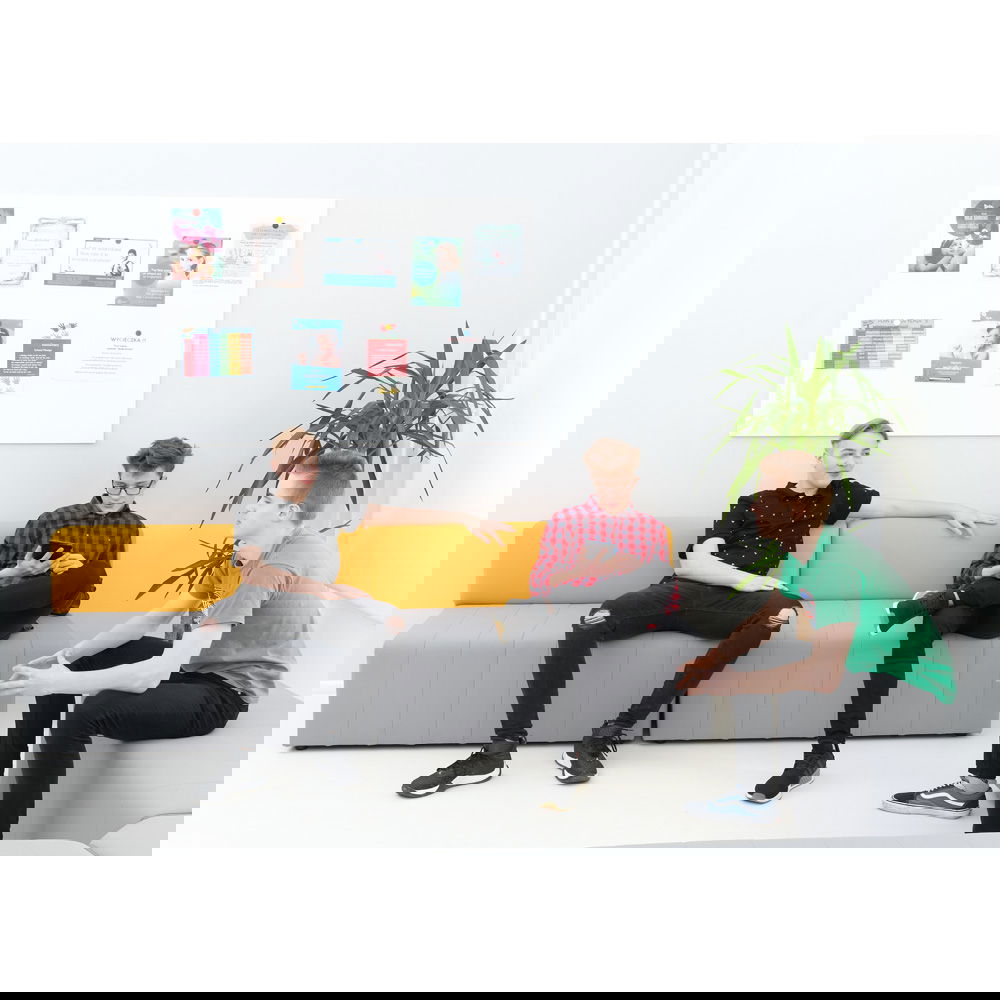 Der Sitzkomfort kommt dabei nicht zu kurz. Eine hochwertige Schaumstofffüllung sorgt dafür, dass man gerne Platz nimmt, sei es für eine kurze Pause oder ein längeres Gespräch. Die Sitzhöhe von 40 cm ist ergonomisch gewählt und ermöglicht ein bequemes Aufstehen. Das Sofa Modern Plus ist in drei geschmackvollen Farbkombinationen erhältlich, bei denen die graue Sitzfläche jeweils mit einer Rückenlehne in Blau, Grün oder Senfgelb harmoniert. Diese dezente Zweifarbigkeit bringt Frische in jeden Raum, ohne aufdringlich zu wirken.