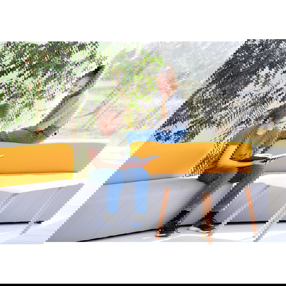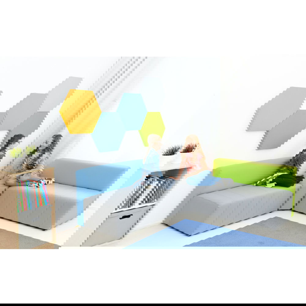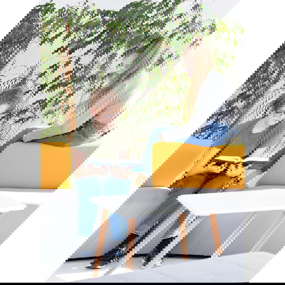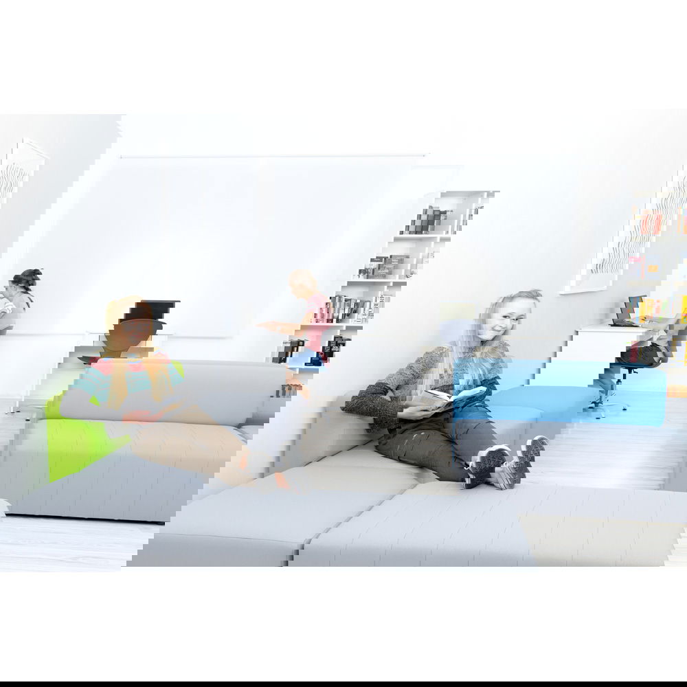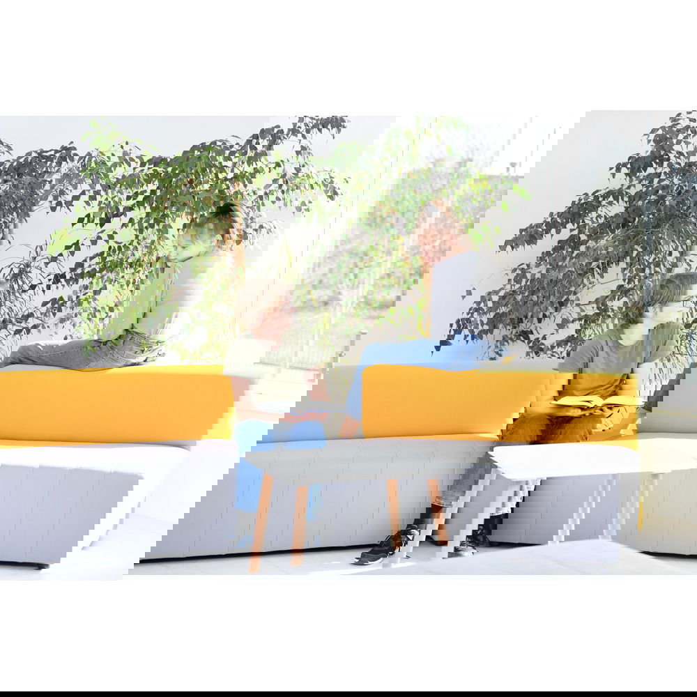 Der Sitzkomfort kommt dabei nicht zu kurz. Eine hochwertige Schaumstofffüllung sorgt dafür, dass man gerne Platz nimmt, sei es für eine kurze Pause oder ein längeres Gespräch. Die Sitzhöhe von 40 cm ist ergonomisch gewählt und ermöglicht ein bequemes Aufstehen. Das Sofa Modern Plus ist in drei geschmackvollen Farbkombinationen erhältlich, bei denen die graue Sitzfläche jeweils mit einer Rückenlehne in Blau, Grün oder Senfgelb harmoniert. Diese dezente Zweifarbigkeit bringt Frische in jeden Raum, ohne aufdringlich zu wirken.