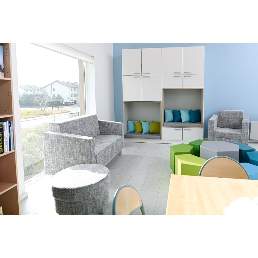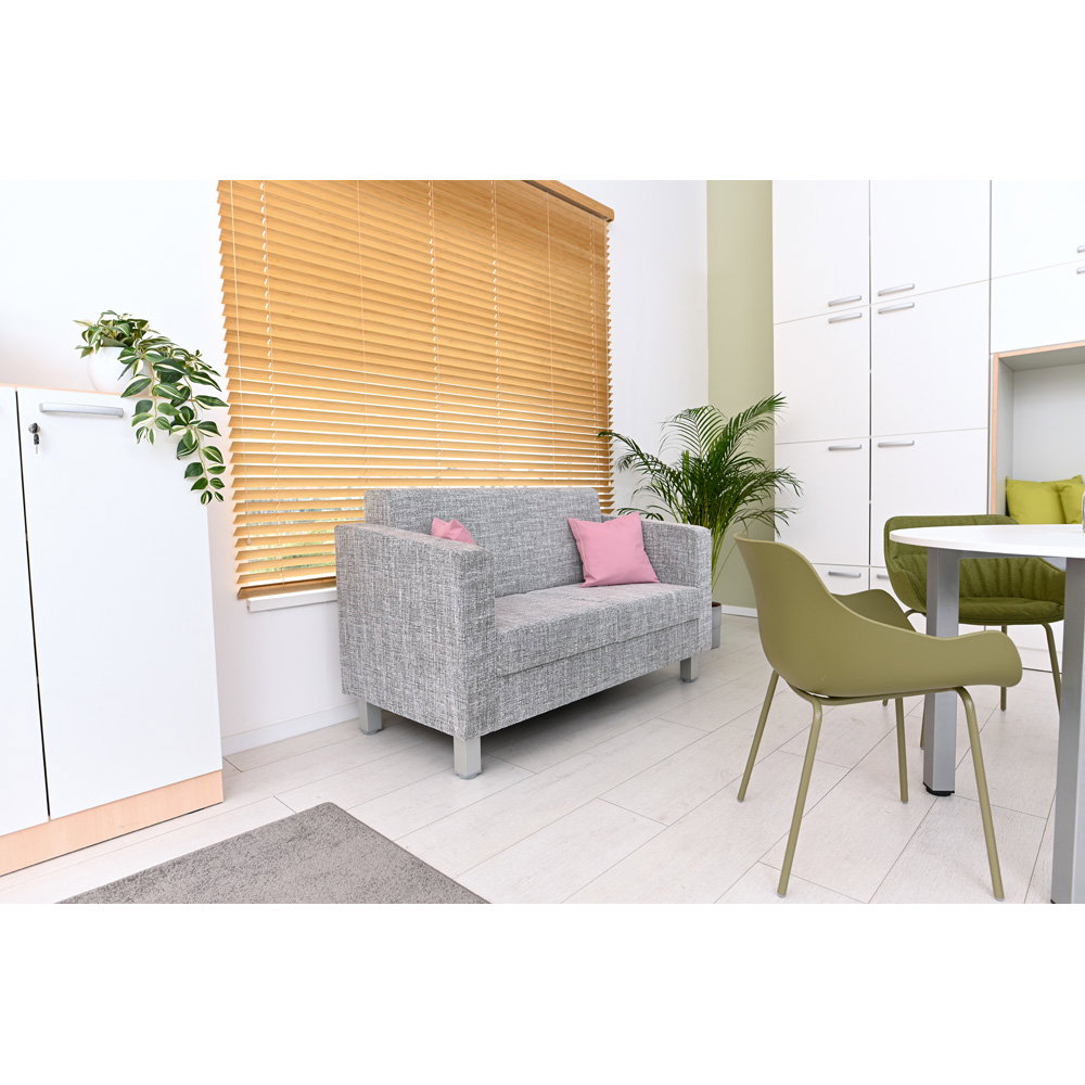 - Lange Lebensdauer: Ein massives Holzgestell und der robuste Polyesterbezug halten den täglichen Anforderungen in öffentlichen Bereichen mühelos stand.