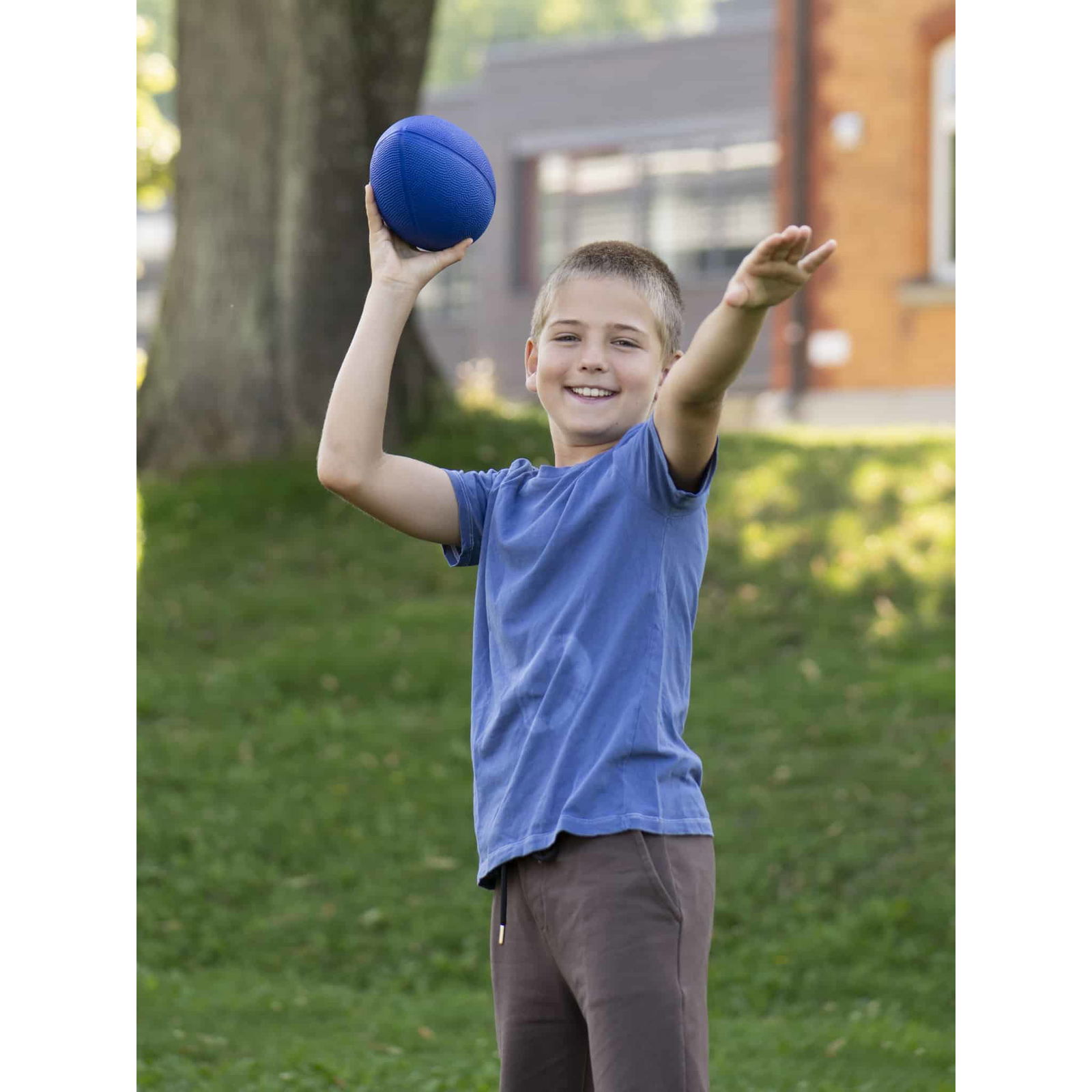 Die leuchtend blaue Farbe macht den Ball im Spielgeschehen leicht erkennbar. Ob auf dem grünen Rasen oder in der Turnhalle, der Ball hebt sich deutlich ab und ermöglicht so eine bessere Orientierung.