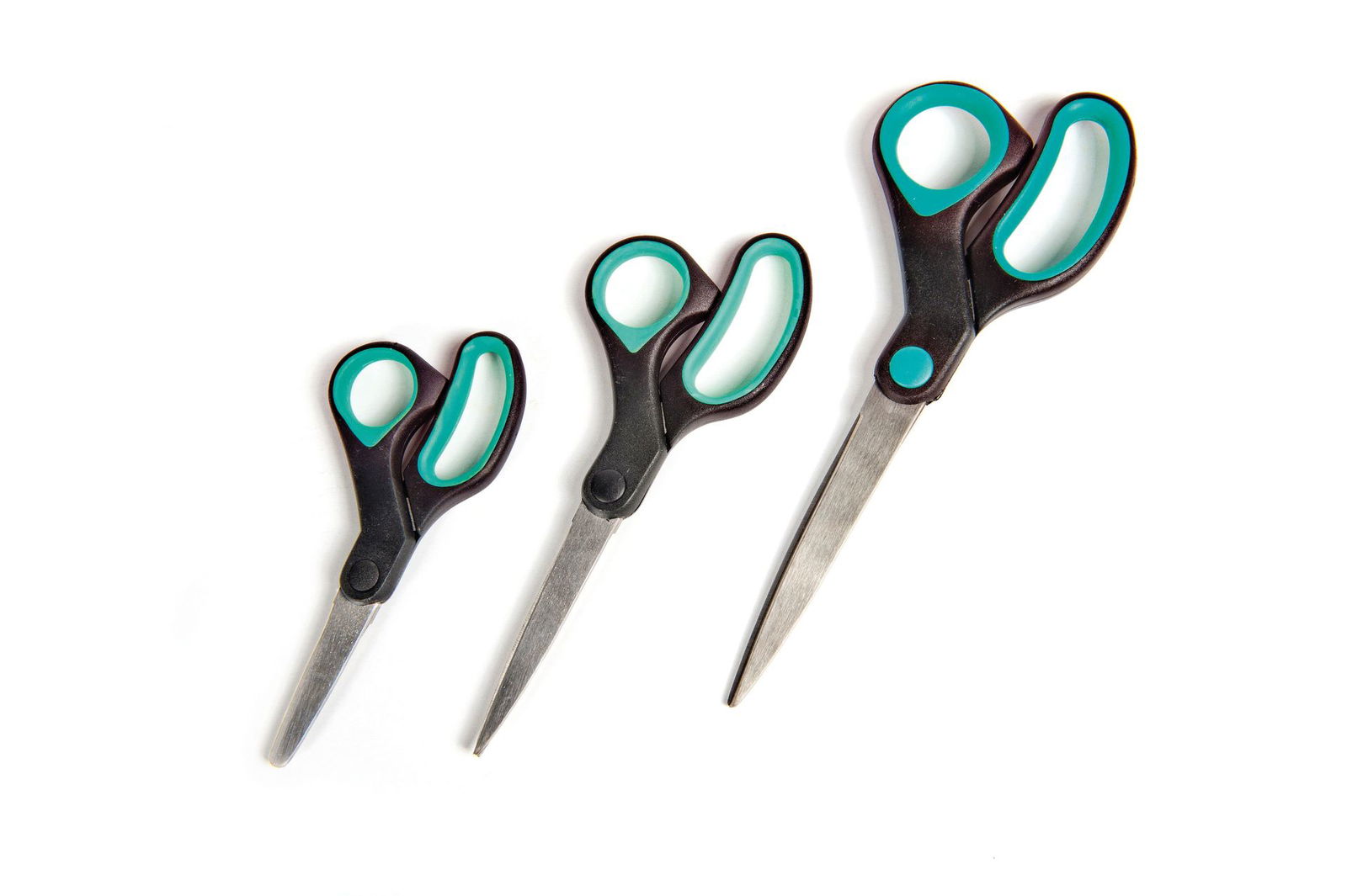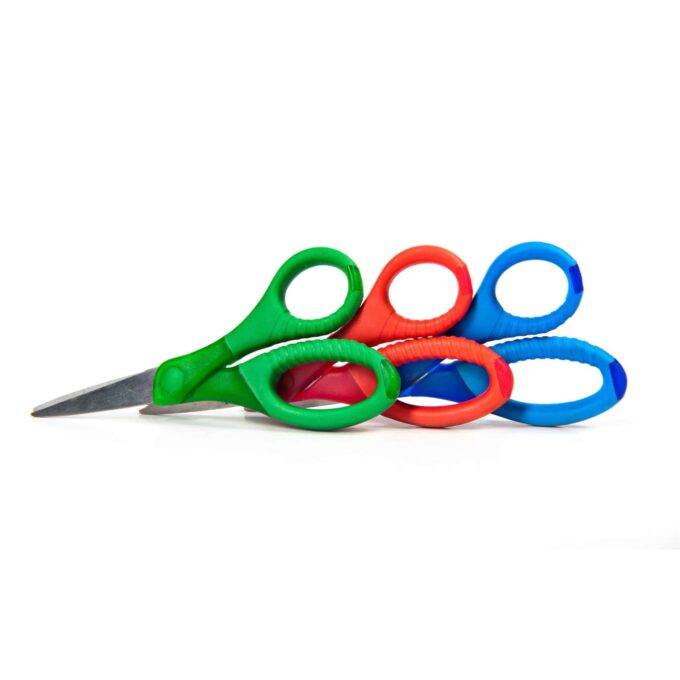 Praktische Schere mit weichem Softgrip zum Schneiden von Papier: Die liebevoll in bunten Farben designte Schere von Dragon Toys ist ideal für Bastelarbeiten geeignet. Mit dem gut in der Hand liegenden Modell gelingt das Schneiden von Papier und auch Karton ganz leicht. Insbesondere der Softgrip, der entlang der gesamten Fingereinlassungen verläuft, schont die Hände beim Basteln.