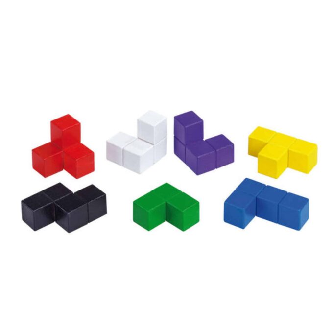 Jedes Set enthält 7 fertig verleimte Soma-Bausteine, die in einem praktischen Stoffsäckchen geliefert werden. Dadurch bleiben die Bausteine stets ordentlich und gut verstaut. Um jüngere Kinder nicht zu überfordern, empfiehlt es sich, zunächst einfache Soma-Figuren aus 2 oder 3 Elementen zusammenzusetzen. Nach und nach können die Schüler dann den Schwierigkeitsgrad steigern und schließlich mit allen 7 Elementen arbeiten.
